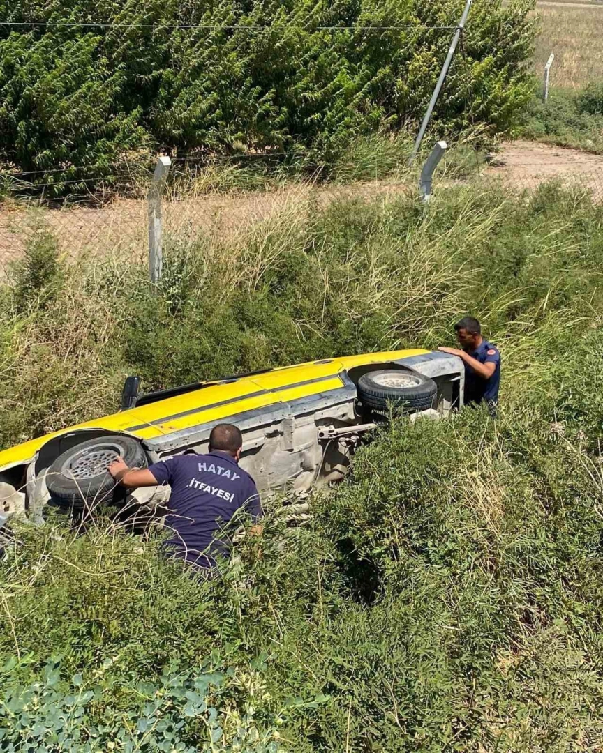 Hatay’da dere yatağına devrilen otomobilin sürücüsü yaralandı.