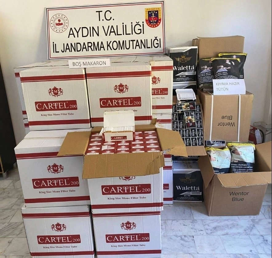 Aydın’ın Germencik ilçesinde jandarma ekipleri tarafından yapılan operasyon çerçevesinde 60 kilogram kıyıma hazır tütün ve 360 bin adet boş makaron ele geçirildi.
