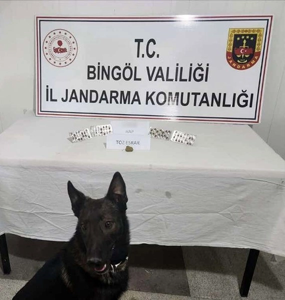 Bingöl İl Jandarma Komutanlığı’ndan yapılan duyuruda, “Bingöl İl Jandarma Komutanlığı unsurlarınca, Genç Doğanca Yol Kontrol Noktasında uyuşturucu arama köpeğinin tepki vermesi üzerine 2 şahsın üst aramasında 51 adet uyuşturucu hap, 9 gram toz esrar maddesi ele geçirilmiş ve adli işlemlere başlanılmıştır” denildi.
