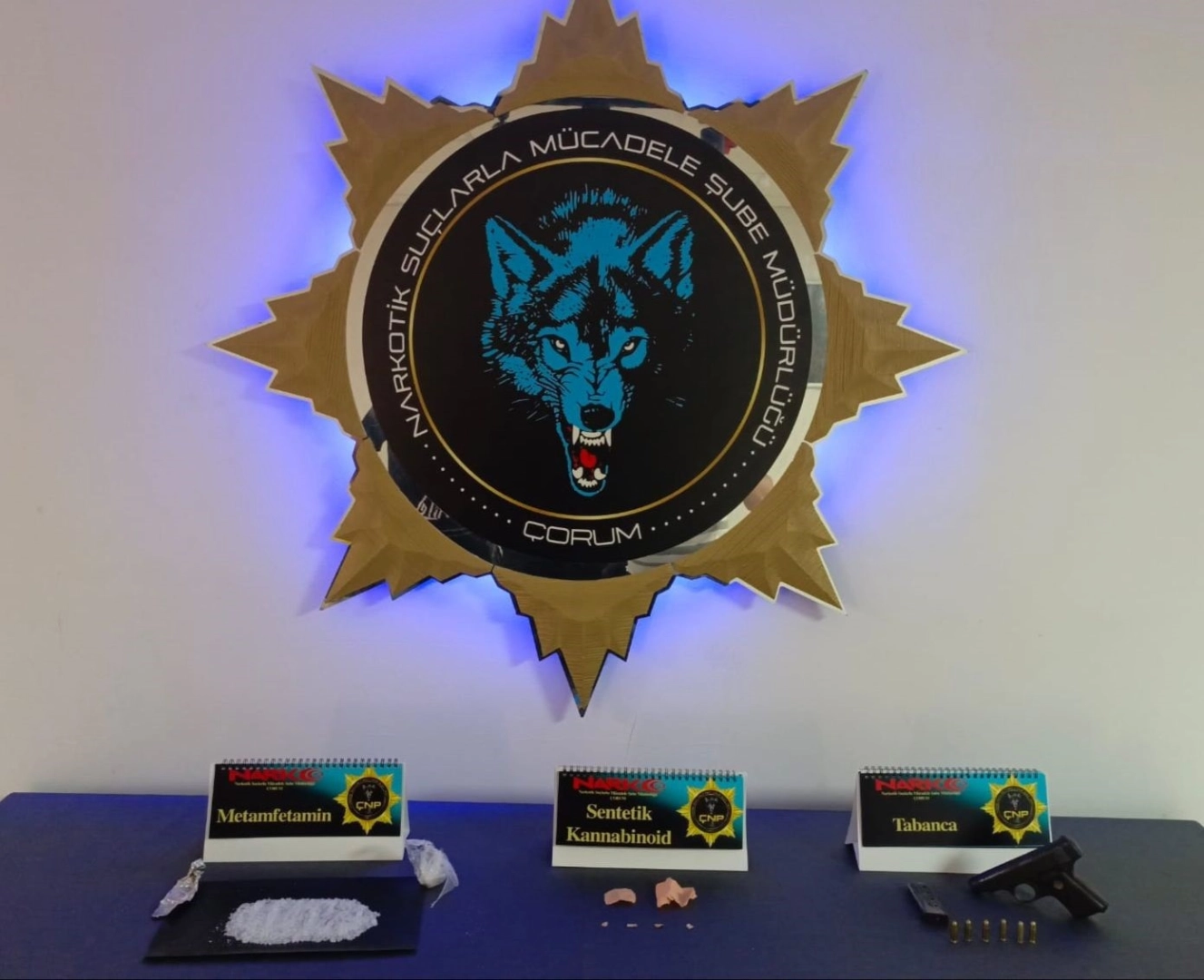 Edinilen bilgilere göre, Çorum İl Emniyet Müdürlüğü Narkotik Suçlarla Mücadele Şube Müdürlüğü tarafından il merkezi ve Osmancık ilçesinde uyuşturucu madde ticaretinin önlenmesine yönelik yapılan çalışmalar çerçevesinde, 8 kişi gözaltına alındı. Şahısların araçlarında, ikametlerinde ve üstlerinde yapılan aramalarda 3 bin 350 gram skunk, 180 gram sentetik kannobinoid hammaddesi, 170 kullanımlık sentetik kannobinoid, 75 adet sentetik ecza hapı, 70 gram metamfetamin, 1 adet ruhsatsız tabanca ve 6 adet fişek ele geçirildi.