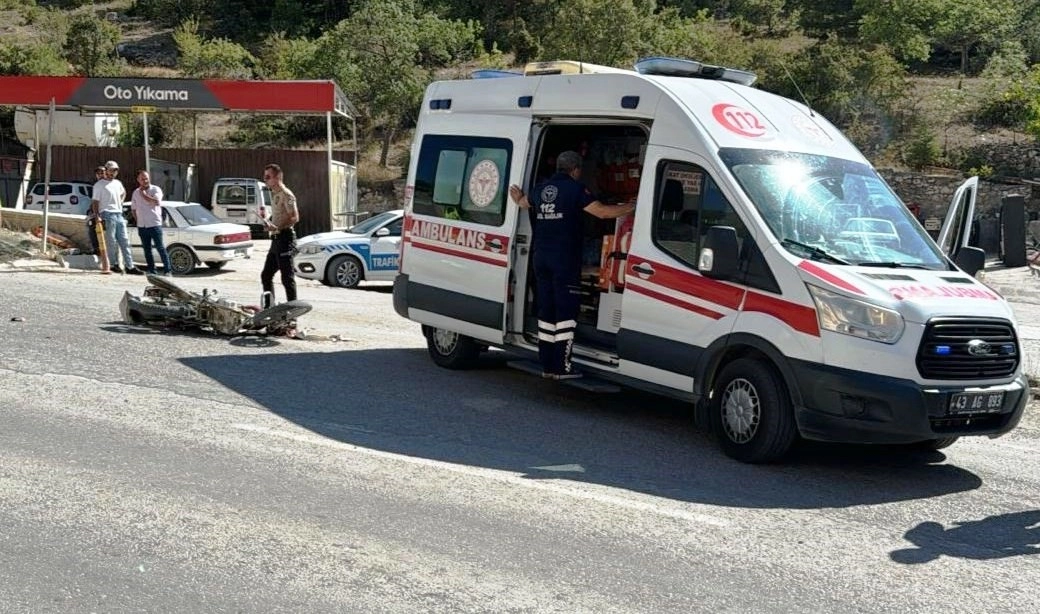 Emet ilçesinde seyir halindeki motosikletin akaryakıt istasyonundan çıkış yapan otomobile çarpması sonucu meydana gelen kazada motosiklet sürücüsü yaralandı.