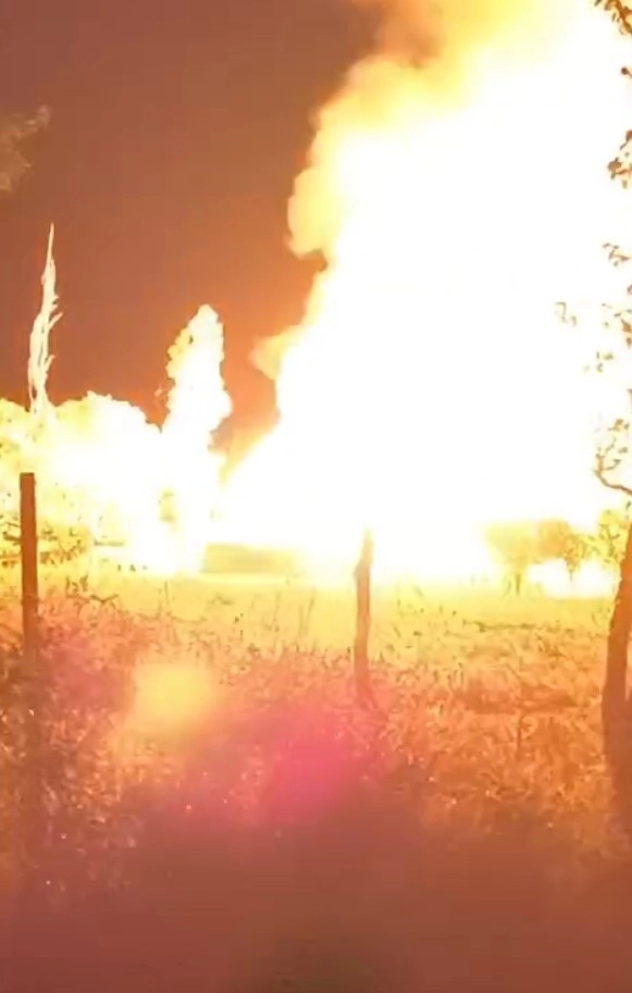 Gümüşhane’nin Kelkit ilçesinde meydana gelen yangında alev alev yanan tek katlı ev kullanılamaz hale gelirken, yanan evdeki patlama anı saniye saniye kaydedildi.