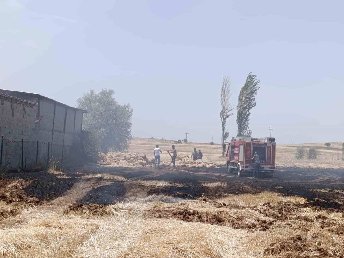 Edinilen bilgiye göre, Görünmez Mahallesi’nde bir hayvan barınağının yanında henüz bilinmeyen bir sebeple başlayan yangın yakınındaki saman balyaları ile tarlaya sıçradı. İhbar üzerine adrese itfaiye, belediye ve jandarma ekipleri sevk edildi. İtfaiye ekiplerinin müdahalesine belediye ekipleri de iş makineleriyle destek verirken, yangın kontrol altına alınarak söndürüldü. Ekipler daha sonra soğutma çalışması yaptı. Yangında saman balyaları ve arazide zarar oluştu.