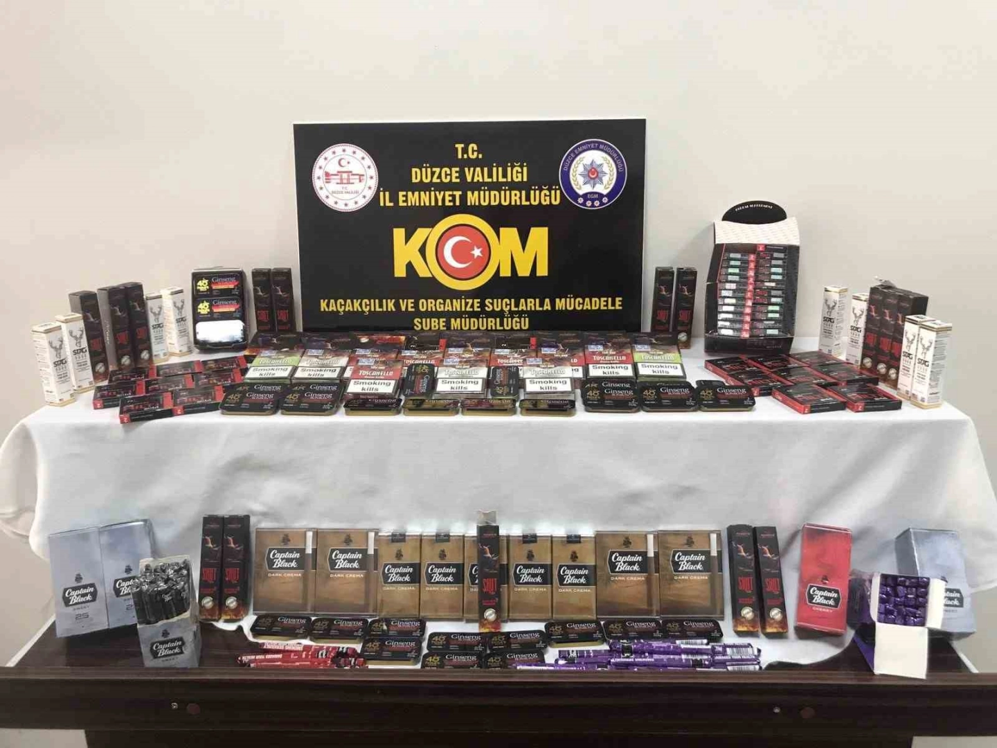 Düzce Cumhuriyet Başsavcılığımız koordinesinde KOM Şube Müdürlüğü ekiplerince şüpheli şahısların iş yerlerinde arama yapıldı. Yapılan aramada 627 kaçak ürün ele geçirildi.