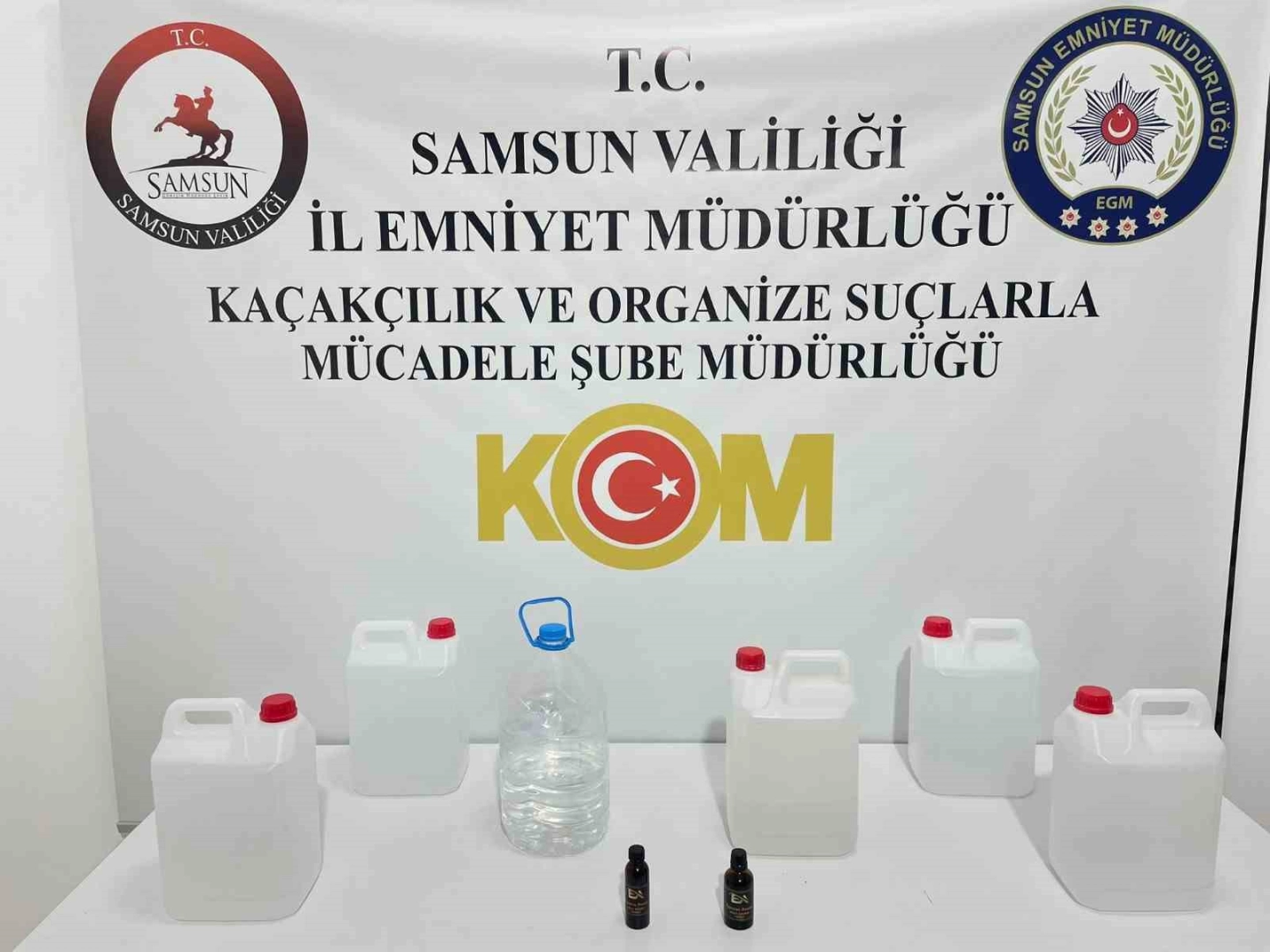 Samsun Emniyet Müdürlüğü Kaçakçılık ve Organize Suçlarla Mücadele (KOM) Şube Müdürlüğü ekipleri tarafından İlkadım ilçesi Çiftlik Mahallesi’nde bir işyerinde yapılan aramada 22 litre etil alkol, 2 litre el yapımı içki, 2 adet her biri 50 mililitrelik alkol kiti ele geçirildi. Operasyon neticesinde iş yeri sahibi T.S. (53) yakalanarak gözaltına alındı.