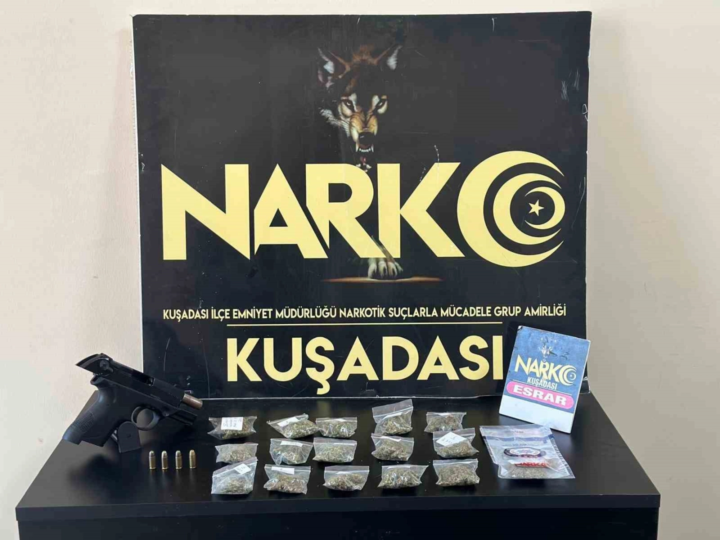 Kuşadası İlçe Emniyet Müdürlüğü Narkotik Suçlarla Mücadele Büro Amirliği ekipleri, uyuşturucu veya uyarıcı madde imal ve ticareti yapan şahıs ve organizasyonlara yönelik operasyonel çalışmalarına devam ediyor. Son operasyonda, elde edilen bilgiler doğrultusunda yapılan değerlendirmeler ve fiziki takip sonucu İkiçeşmelik Mahallesi’nde 4 kişi yakalanarak gözaltına alındı. Operasyon kapsamında, şahısların ikametlerinde ve araçlarında yapılan aramalarda, 2 parça halinde satışa hazır 2.40 gram esrar, 14 parça halinde satışa hazır 27.04 gram esrar, tek parça halinde 2.59 gram esrar, 1 adet 7,65 mm çapında ruhsatsız tabanca, 1 adet şarjör, 4 adet 7,65 mm çapında fişek ele geçirildi. Gözaltına alınan S.G. isimli şahıs, emniyetteki işlemlerinin ardından serbest bırakıldı. Diğer şüpheliler E.P., T.I. ve S.Ç. isimli şahıslar ise emniyetteki işlemlerinin ardından adli makamlara sevk edildi. E.P. ve T.I. isimli şahıslar adli kontrol şartıyla serbest bırakılırken, S.Ç.isimli şahıs tutuklanarak cezaevine gönderildi.