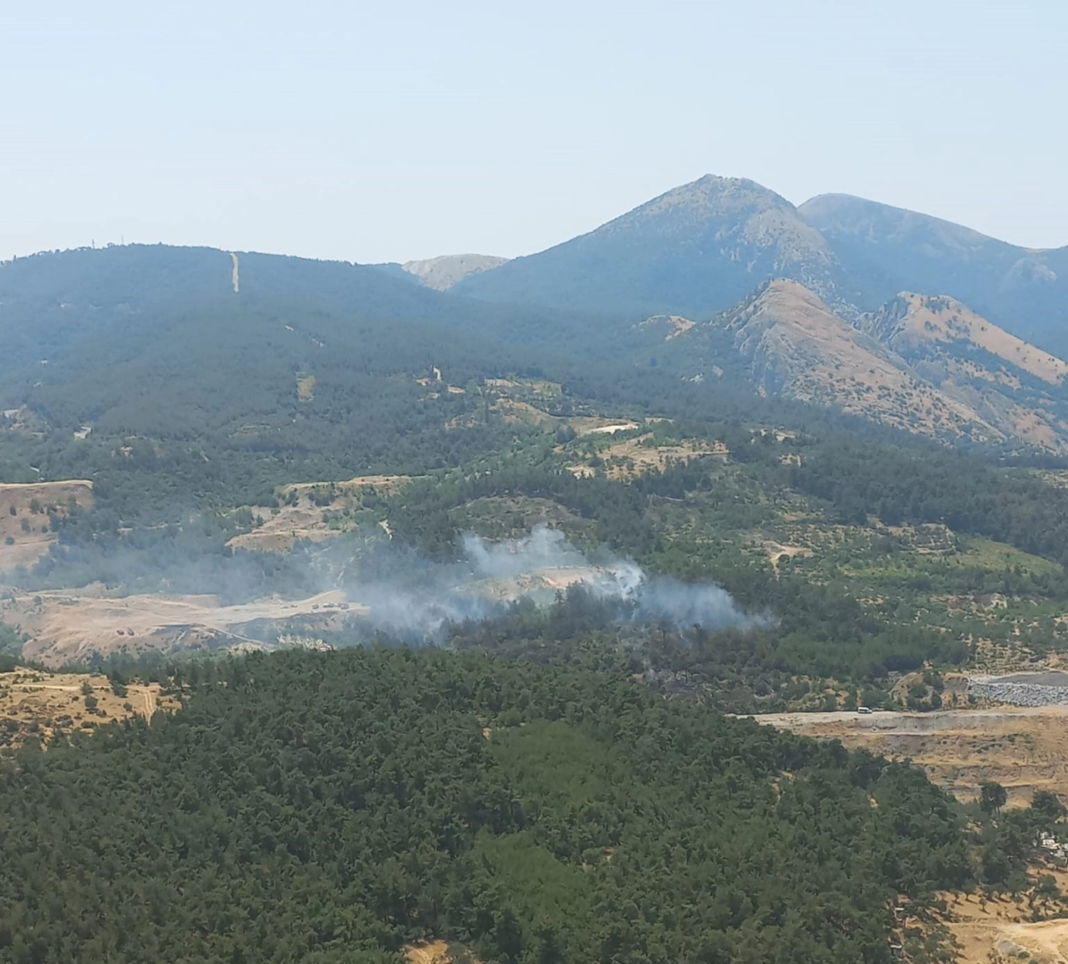 Manisa’nın Soma ilçesine bağlı Darkale Mahallesi’ndeki ormanlık alanda yangın başladı. Yangına Orman İşletme Müdürlüğüne bağlı 4 uçak, 3 helikopter, 13 arazöz, 5 su ikmal ve 1 dozer ile Manisa Büyükşehir Belediyesine bağlı itfaiye ekiplerince müdahaleye başlandı. Yaklaşık 2 buçuk saat süren müdahaleler sonrası yangın kısmen kontrol altına alınırken soğutma çalışmaları devam ediyor.