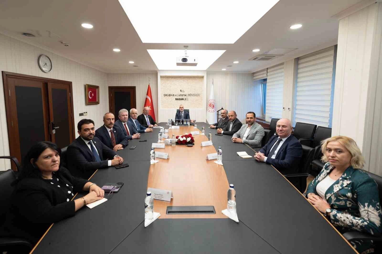 ATO Yönetim Kurulu Başkanı Gürsel Baran ve beraberindeki heyet, Çalışma ve Sosyal Güvenlik Bakanı Vedat Işıkhan’ı ziyaret etti. Baran, Çalışma ve Sosyal Güvenlik Bakanlığı binasında gerçekleşen ziyarette ATO üyelerinin gündeminde yer alan konulara değindi. ATO üyelerinin çalışanları için SGK prim ödemelerinde bankaların değişen oranlarda komisyon uyguladığını kaydeden Baran, “Bankalara ödenen bu komisyon oranları işverenler için önemli bir tutarı ifade ediyor. Sosyal Güvenlik Kurumu’nun da vergi ödemelerinde olduğu gibi komisyon ödemede prim tahsilatı yapabilmesi için bankalarla görüşülmesini ve reel sektörün lehine bir çözüm yolu bulunmasını talep ediyoruz” diye konuştu.