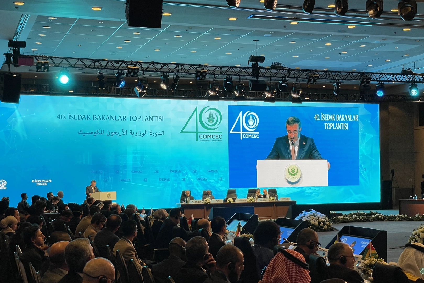 İSTANBUL (İHA) - Cumhurbaşkanı Yardımcısı Cevdet Yılmaz, İslam İşbirliği Teşkilatı (İİT) Ekonomik ve Ticari İşbirliği Daimi Komitesi (İSEDAK) 40. Bakanlar Oturumu Kapanış Programı'nda üye ülkelerin ekonomik büyüme potansiyeli ve işbirliği hedeflerine dair önemli açıklamalarda bulundu. Dünya Bankası verilerine göre, İİT'ye üye ülkelerin 2023 yılı toplam milli gelirinin 8,6 trilyon dolar olduğunu belirten Yılmaz, bu miktarın küresel milli gelirin yaklaşık yüzde 8,1’ine karşılık geldiğini ifade etti.