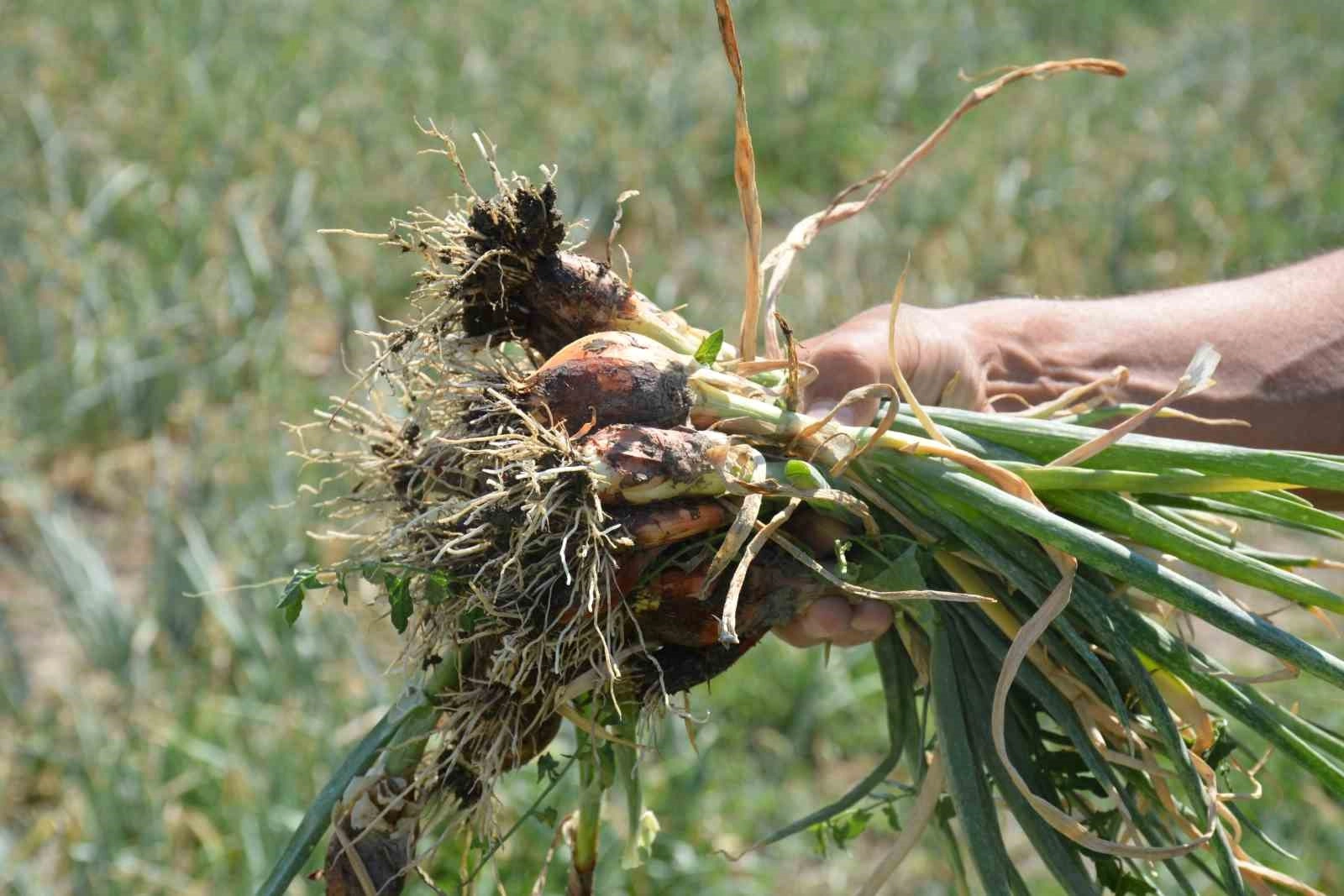 Yürekli, “Soğanın bir kellesi en az yarım kilo olması gerekirken şu an 100 ila 200 gram. Bu çiftçinin maliyetini de kurtarmaz. Çok büyük zarar eder. Rekolte düşük, gördüğünüz yerde soğanlar hep yanmış. Denizi de döksen soğanlar olmaz artık. Yüzde 70 ila 80 böyle” diye konuştu.