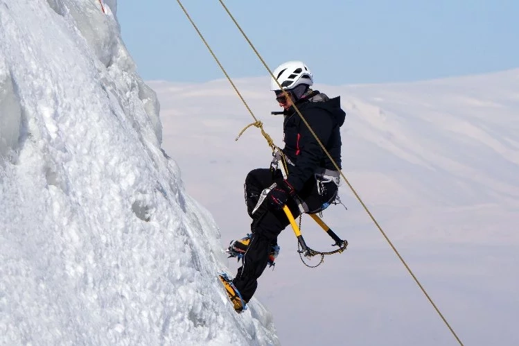 The ice climbing wall at Palandöken Ski Center, which boasts the world's longest and steepest ski slopes, is attracting the interest of enthusiasts. Those who want to experience ice climbing on snow have the opportunity to do so in Palandöken. The artificial ice park, 30 meters high and 150 meters wide, located at the Palandöken Ski Center in Erzurum, offers adrenaline enthusiasts unforgettable moments. The artificial ice park at Palandöken Ski Center, known as the "shining star" of winter tourism, is particularly popular among adrenaline junkies interested in ice climbing.