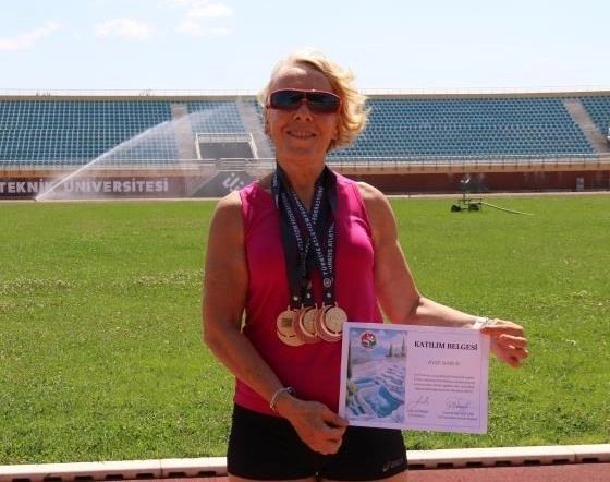 Eskişehir Teknik Üniversitesi’nden memur emeklisi olan master atlet Ayşe Babür, 68 yaşında hem yurt içi hem de yurt dışındaki yarışmalarda elde ettiği başarılarla dikkat çekiyor. 58 yıllık spor hayatında farklı kategoride çok sayıda derece elde eden Babür, son olarak geçtiğimiz günlerde Denizli’de düzenlenen Türkiye Şampiyonası’nda kendi yaş kategorisinde çekiç, ağırlık atma ve 3 adım atlamada 1. oldu.