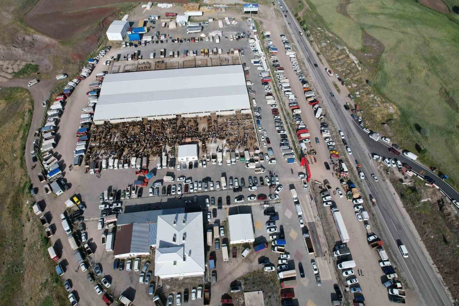 Ankara’nın en büyük kurban pazarlarından biri olan Çubuk hayvan pazarında yaşanan yoğunluk havadan görüntülendi.