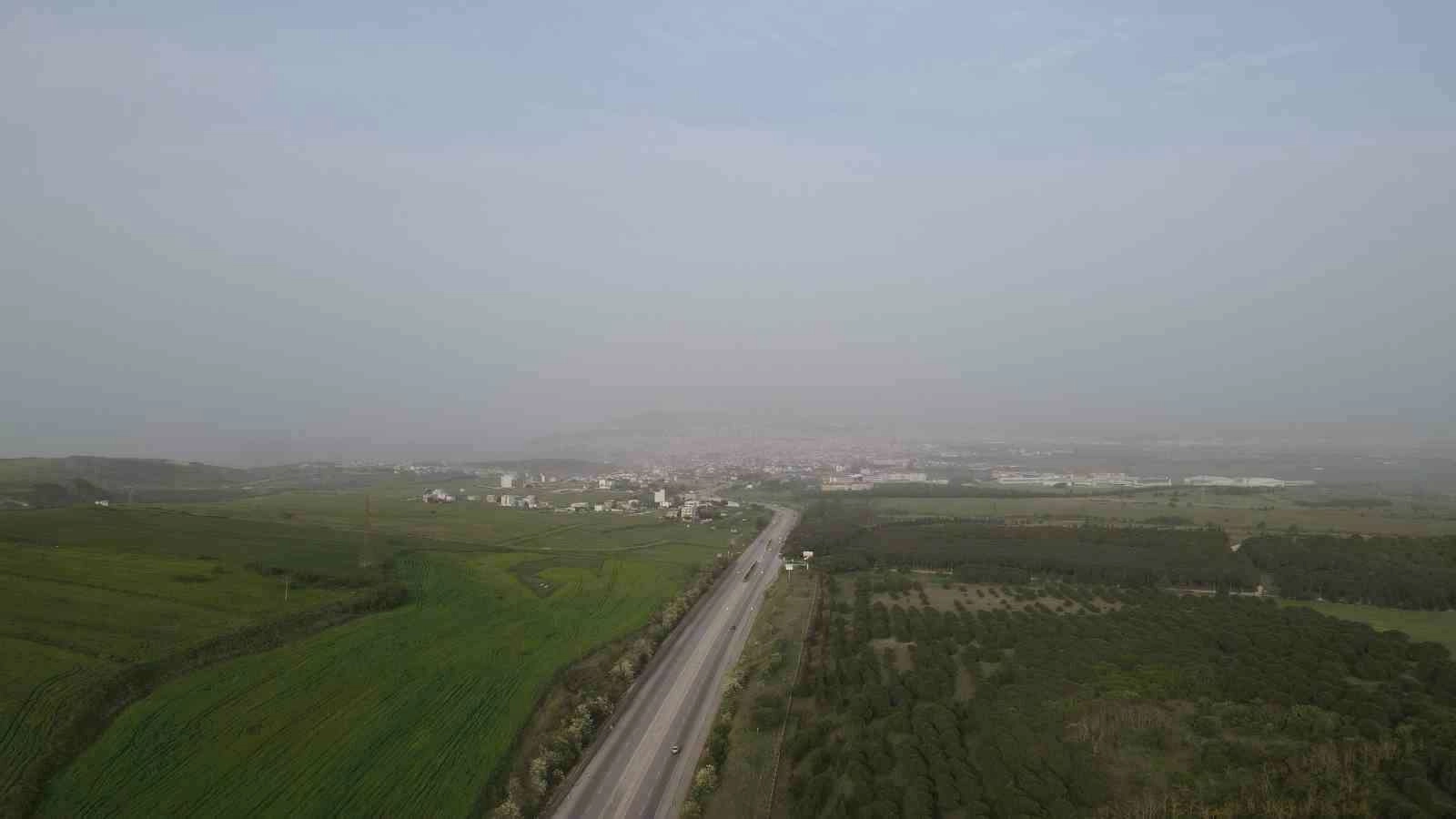Libya çöllerinden kalkarak Yunanistan üzerinden Türkiye’ye giriş yapan toz bulutları, Bandırma semalarını kapladı. Göz gözü görmeyen Bandırma’da halk, 3 gündür etkisini sürdüren toz bulutlarıyla mücadele ediyor. Meteoroloji uzmanları, toz taşınımıyla birlikte yağmur yağarsa çamur yağmuru olabileceğini belirtiyor ve toz bulutlarının etkisinin devam edeceğini söylüyor. Havadan çekilen dron görüntülerinde, Bandırma semalarını kaplayan bu toz bulutları net bir şekilde görülüyor.