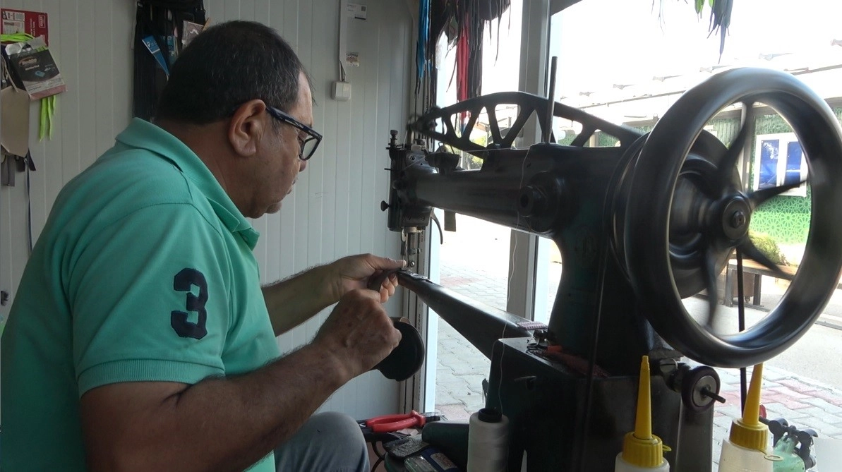 Severek yaptığı mesleğini 56 yıldır devam ettiğini depremde yıkılan iş yerinin yerine konteyner çarşıda mesleğine yeniden döndüğünü söyleyen Yılmaz Kartal Halitoğlu, "Depremde iş yerim yıkıldı, iş yerimde aletlerim de gitti. Devletimize başvurdum Cebelibereket konteyner çarşımızda sanatımı icra ediyorum. Devlet destekli, devletten de destek gördük zanaatkarlara yardım elini uzattılar. Bu sanat baba sanatı olduğu için 1968-69’da babamın elinden tuttum, ortaokulu bitirdim ve sanata dahil oldum. Babamın ismi Muzaffer Usta, ünlü bir ustaydı ve yıllarca ayakkabı diktik, sipariş olsun, ağalara, beylere, talebelere, memur arkadaşlara, yakın köylere biz hitap ediyorduk. Osmaniyeli olarak en güzel şekilde sanatımızı devam ettirdik 55-60 seneye dayandı. Babam 90 yaşında vefat etti ve 15-20 tane kalfa yetiştirdi ve diğer şehirlere dağıldı onlar. Kalkınma payında daha seri olarak onlar çalıştı büyük şehirlerde ama biz Osmaniyeli olarak sanatımı şu anda böyle en güzel şekilde icra ediyorum. Emekli oldum bu ayakkabıcılık sanatında çocuklarımı okuttum ve baş göz ettim ve elimin emeğiyle, nasırlı ellerimle, göz nurumla en güzel şekilde geçinip gidiyorum. Bu sanatta en güzel değer güzel insanlarla tanışıp güzel şekilde eğitimli olarak bunlardan sohbeti bölüşüyorum" diye konuştu.