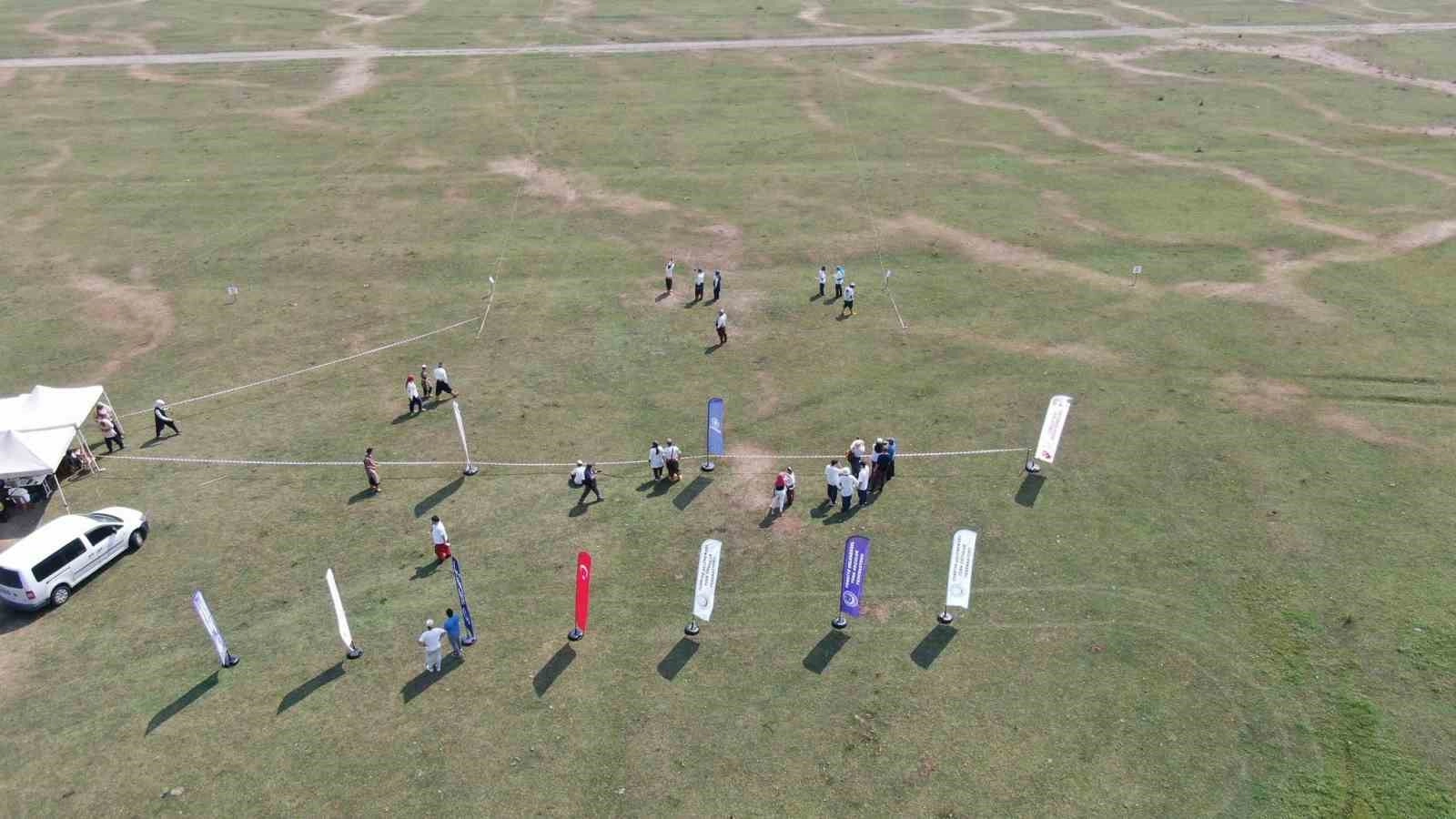 2 Gün sürecek olan şampiyonada 250 sporcu yay çekti en uzun mesafeye atmaya çalıştı.