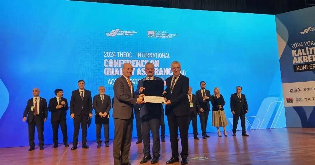 Kurumsal Akreditasyon Belgesi, Ankara Hacı Bayram Veli Üniversitesi ev sahipliğinde gerçekleştirilen “Uluslararası Kalite Güvencesi ve Akreditasyon” konferansındaki törende; YÖK Başkanı Prof. Dr. Erol Özvar ve YÖKAK Başkanı Prof. Dr. Ümit Kocabıçak tarafından EBYÜ Rektörü Prof. Dr. Akın Levent’e takdim edildi. Törende EBYÜ’yü temsilen Rektör Yardımcısı ve Kalite Koordinatörü Prof. Dr. Ali Ercan Ekinci, Dr. Öğr. Üyesi M. Kürşat Öksüz ve Öğr. Gör. Nursel Kuyrukluyıldız da yer aldı.