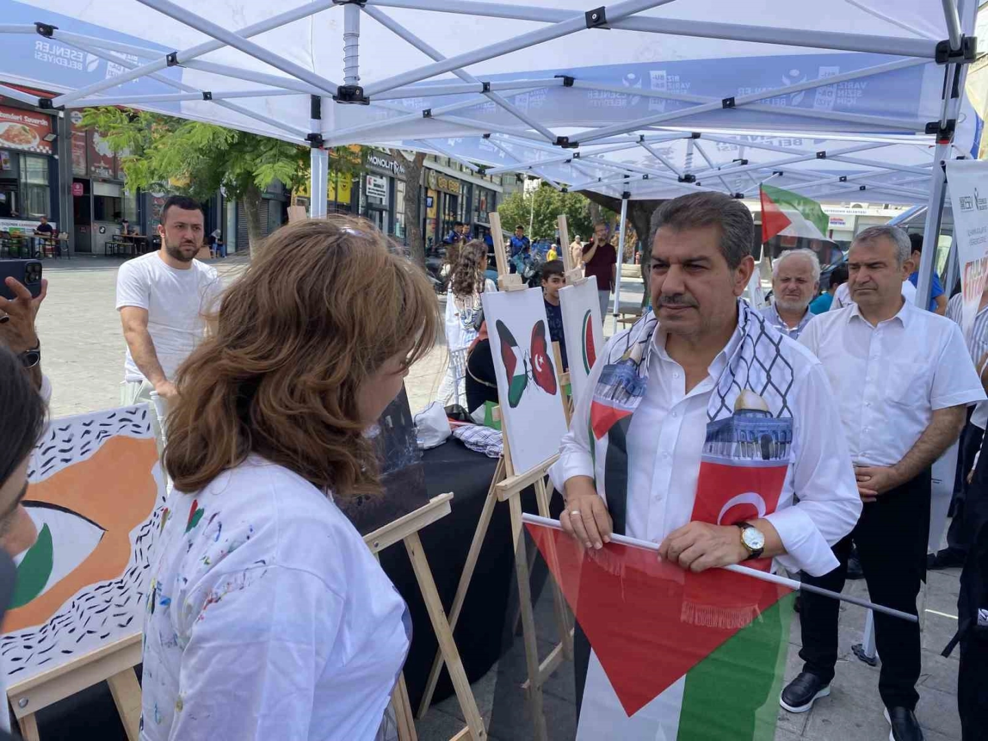 Esenler Belediyesi, İsrail’in Gazze’deki zulmüne dikkat çekmek amacıyla İlhami Atalay ve ekibinin öncülüğünde yapılan “Zulmü Fırçala 308. Gün” etkinliğini Esenler Dörtyol Meydanında düzenledi. Esenler’deki çocukların yaptıkları resimlerin yer aldığı sergiye Esenler Belediye Başkanı Mehmet Tevfik Göksu ve çok sayıda vatandaş katıldı. Belediye Başkanı Göksu, sergiyi gezip tek tek incelemede bulundu. Bayrakları eline alan çocuklarla hatıra fotoğrafı çekindi.