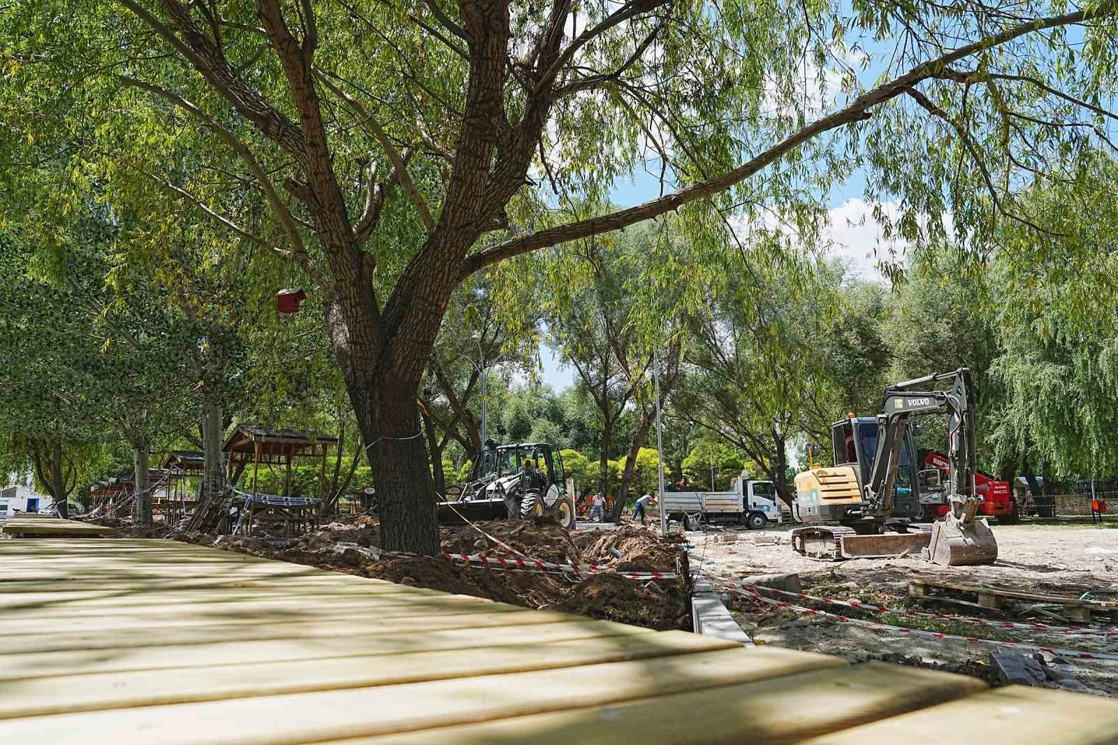 Daha modern ve kullanışlı bir alana kavuşacak parkta yapılan çalışmalar sırasında, alanın doğal dokusu korunuyor.