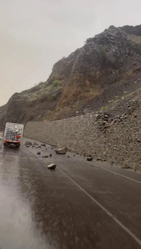 Kars’ın Sarıkamış ilçesinde yola düşen kaya parçaları ulaşımı aksattı.