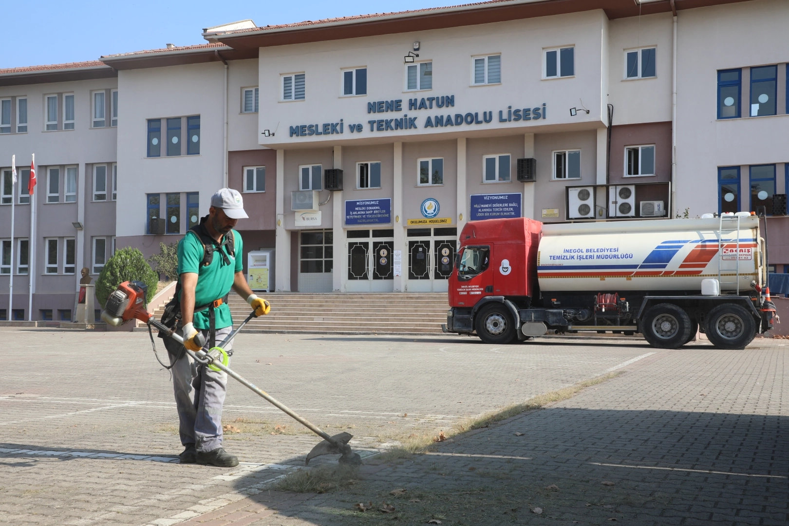 İnegöl Belediyesi Temizlik İşleri Müdürlüğü ve Park Bahçeler Müdürlüğü ekipleri, 2024-25 eğitim öğretim yılı öncesi okul bahçelerinde temizlik ve yeşil alan bakım çalışmaları başlattı. Bir yandan bahçeler yıkanıp temizlenirken, bir yandan çimler biçilip ağaçlar budanıyor. 09 Eylül’de başlayacak eğitim öğretim yılı öncesinde okul bahçeler öğrencilere hazır hale getiriliyor.