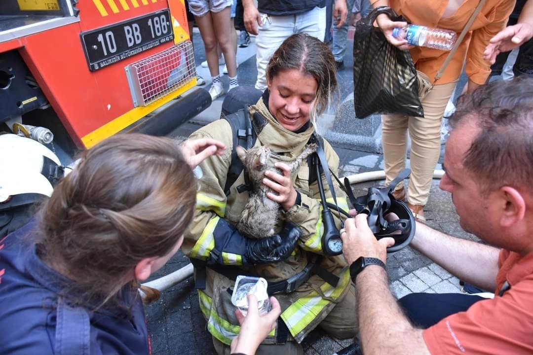 Balıkesir’in Karesi ilçesi Yıldırım Mahallesi Yıldırım Caddesi’nde bir apartmanın birinci katında çıkan yangına hızlı bir şekilde intikal eden Balıkesir Büyükşehir Belediyesi İtfaiye Dairesi Başkanlığı ekipleri, büyümeden yangını söndürdü. Yangına müdahale eden ekipte yer alan itfaiye eri Seray Başol, pencereyi açmak için gittiği yan odada yerde bitkin halde yatan yavru kediyi fark etti. İlk müdahaleyi gerçekleştirmesinin ardından kendi temiz hava solunum cihazını takarak kedinin hayatını kurtardı. Ekipler, hemen ardından Balıkesir Büyükşehir Belediyesi’nin tam donanımlı hayvan ambulansı Vetbulans’ı aradı. Hızlı bir şekilde can dostu Balıkesir Büyükşehir Belediyesi Altıeylül Sokak Hayvanları Tedavi Merkezi’ne nakleden Vetbulans’da da müdahale edilen yavru kedinin tedavisi en iyi şekilde gerçekleştirildi.