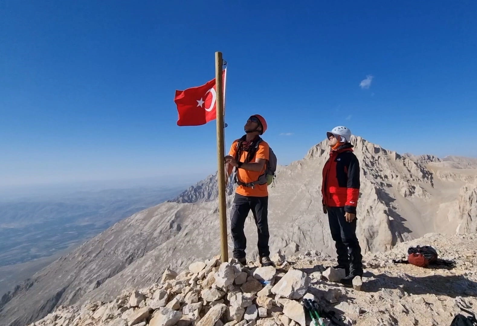 Zirve noktasında bayrağı bulunmayan direğe bayrak çeken dağcılar, zirve defterini imzaladıktan sonra saat 17.30’da Güney Çarşak Rotası’ndan dönüşe geçtiler.
