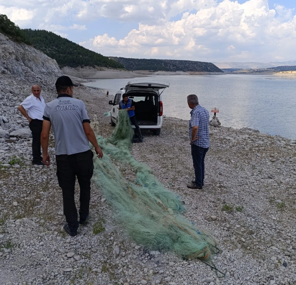 Merkezi Ankara’da bulunan Amatör ve Sportif Olta Balıkçıları Federasyonu (ASOF) gönüllülerinin ihbarını değerlendiren Kızılcahamam İlçe Tarım ve Orman Müdürlüğü ve ANFA personeli, gölden 500 metre misina ağ topladı. Ekipler ağlara takılan balıklardan canlı olanları suya bırakırken, ağa el koydu.