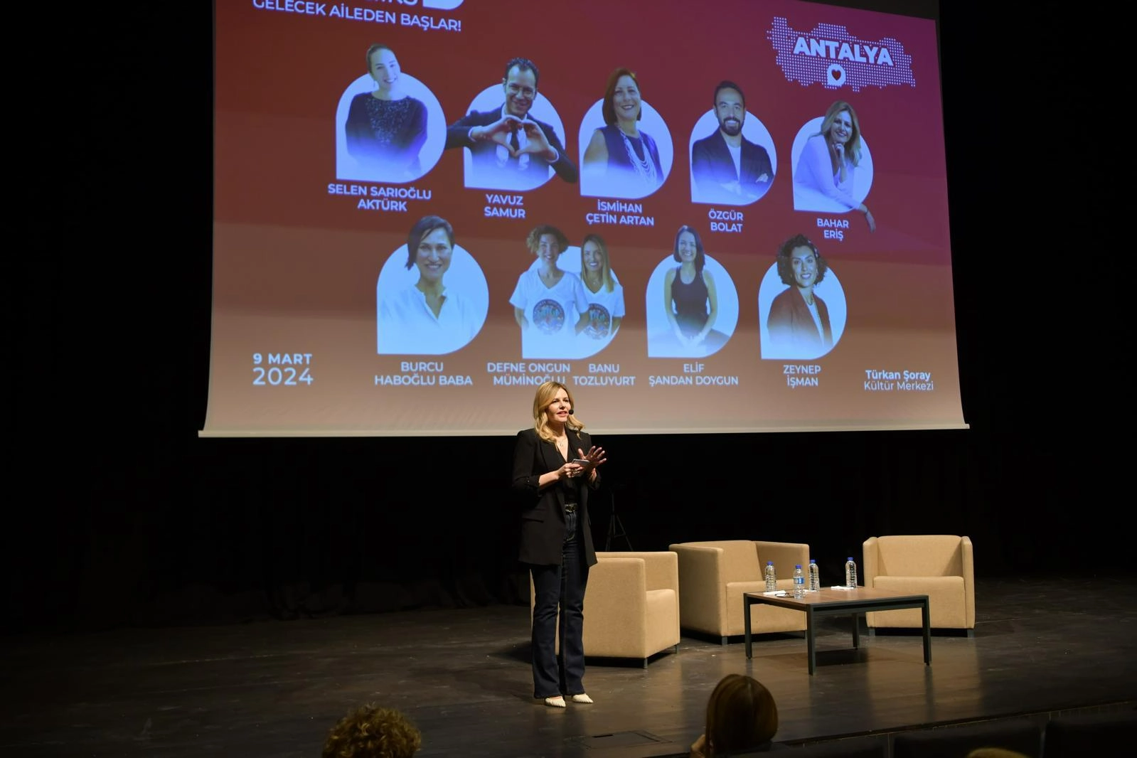 Eğitimci Dr. Bahar Eriş ve Aile Çocuk Yazarı Zeynep İşman ortaklığında gerçekleştirilen etkinlikte hemen her yaş grubundan çocuğu olan ebeveynler, ebeveyn adayları ve eğitimciler için zengin içerikler sunuldu. Çocuk Kitapları Yazarı Defne Ongun Müminoğlu ve Eğitimci/Yazar Banu Tozluyurt, ilk oturumda, Türkiye’nin her yerini köşe bucak dolaştıkları “Birlikte Geleceğiz” projesini anlattı. Salonu dolduran yüzlerce Antalyalı’nın gözlerini dolduran ve ilham veren projeye katkı sunmak isteyenler, konuşmacılarla buluştu.