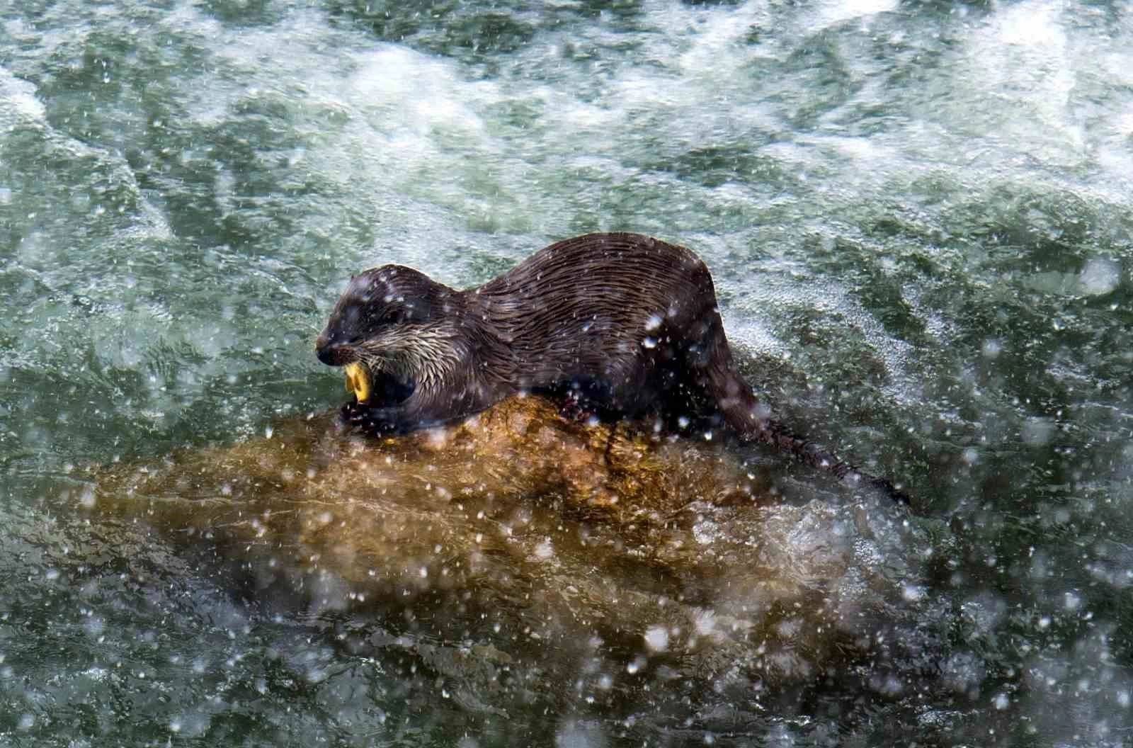 Oyun oynamayı seven, oyuncu bir tür olarak bilinen ve Çoruh’un sularında bata çıka oyunlar oynayan su samuru bu sefer nehir kıyısında görüntülendi.