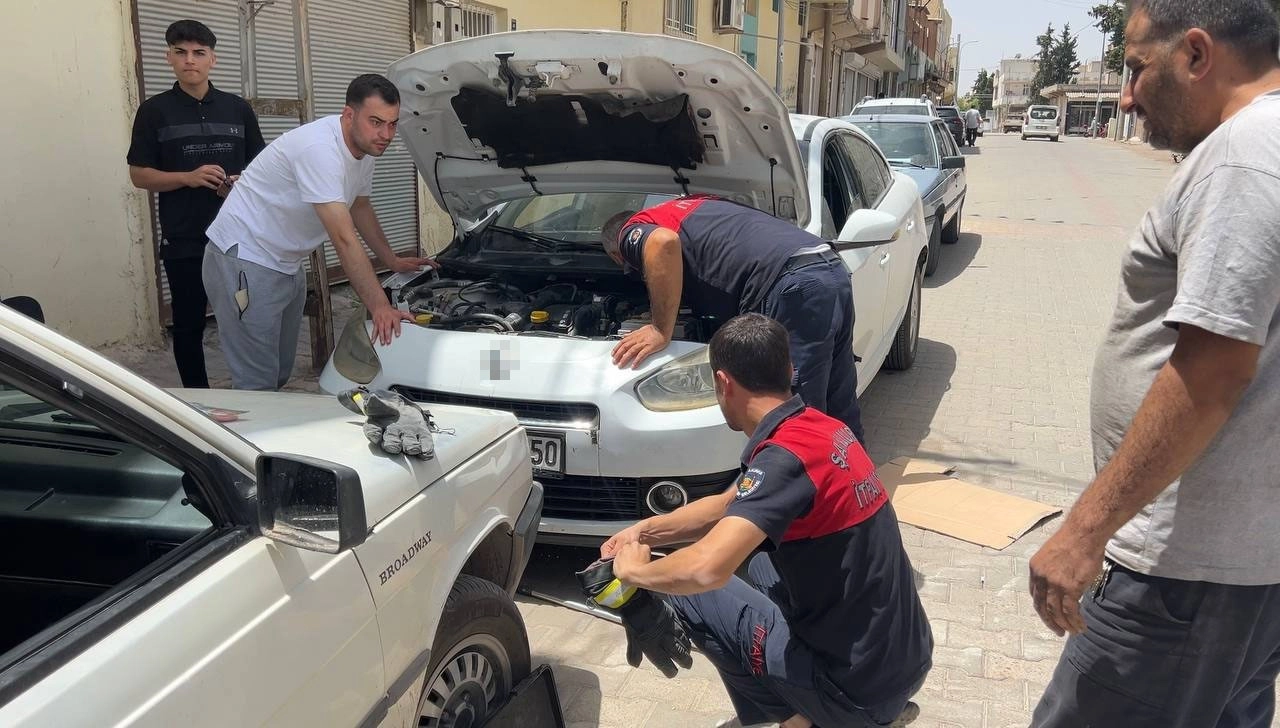Şanlıurfa’nın Ceylanpınar ilçesinde otomobilin motor kısmına giren yavru kedi, itfaiyenin uzun uğraşları sonucu çıkartıldı.