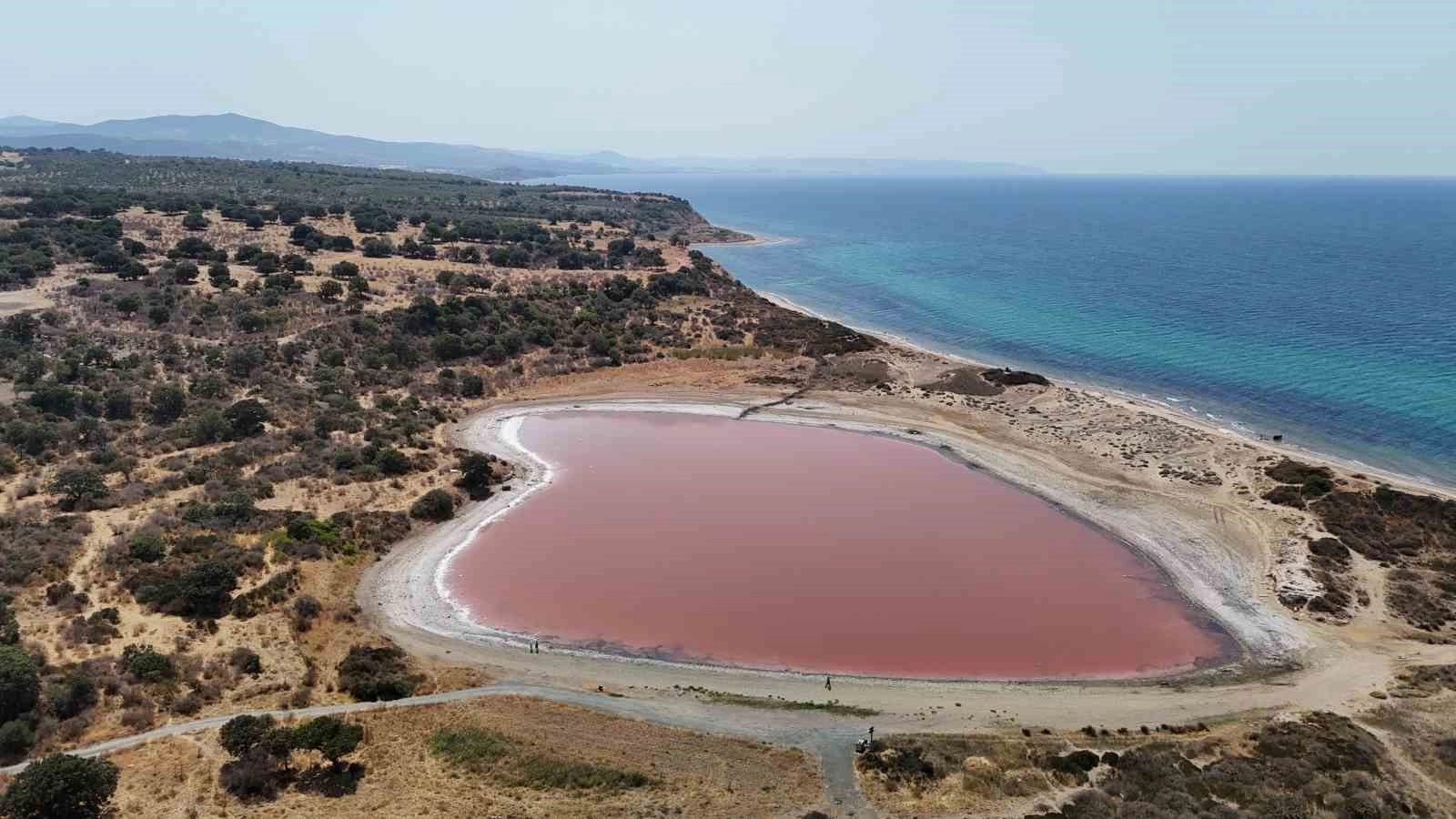 Sıcaklık ve tuzluluğun artmasından dolayı ’dunaliella salina’ (su yosunları) adlı mikroskobik bitkisel canlının fazla üremesi nedeniyle ortaya çıkan pembe ve kırmızıya yakın tonlar, göle farklı bir görünüm kazandırıyor. Özellikle Ağustos ve Eylül aylarında pembeye yakın tonlara bürünen gölde, Kasım ve Aralık aylarında bazı günlerde yaşanan ısı değişikliğiyle de aynı renk oluşuyor. Kalp şeklindeki pembe gölün yapılacak araştırma ve inceleme sonrası turizme kazandırılması planlanıyor. Pembe göl, Troya, Assos, Alexandria Troas, Apollon Smintheus antik kentlerinin ziyaretçi sayılarına olumlu katkısının olacağı varsayıldığı gibi, yeni turizm bölgeleri olarak belirlenen Kadırga Koyu, Sivrice, Sokak Ağzı, Babakale, Gürpınar ve Tuzla açısından da önemli rol oynaması bekleniyor.