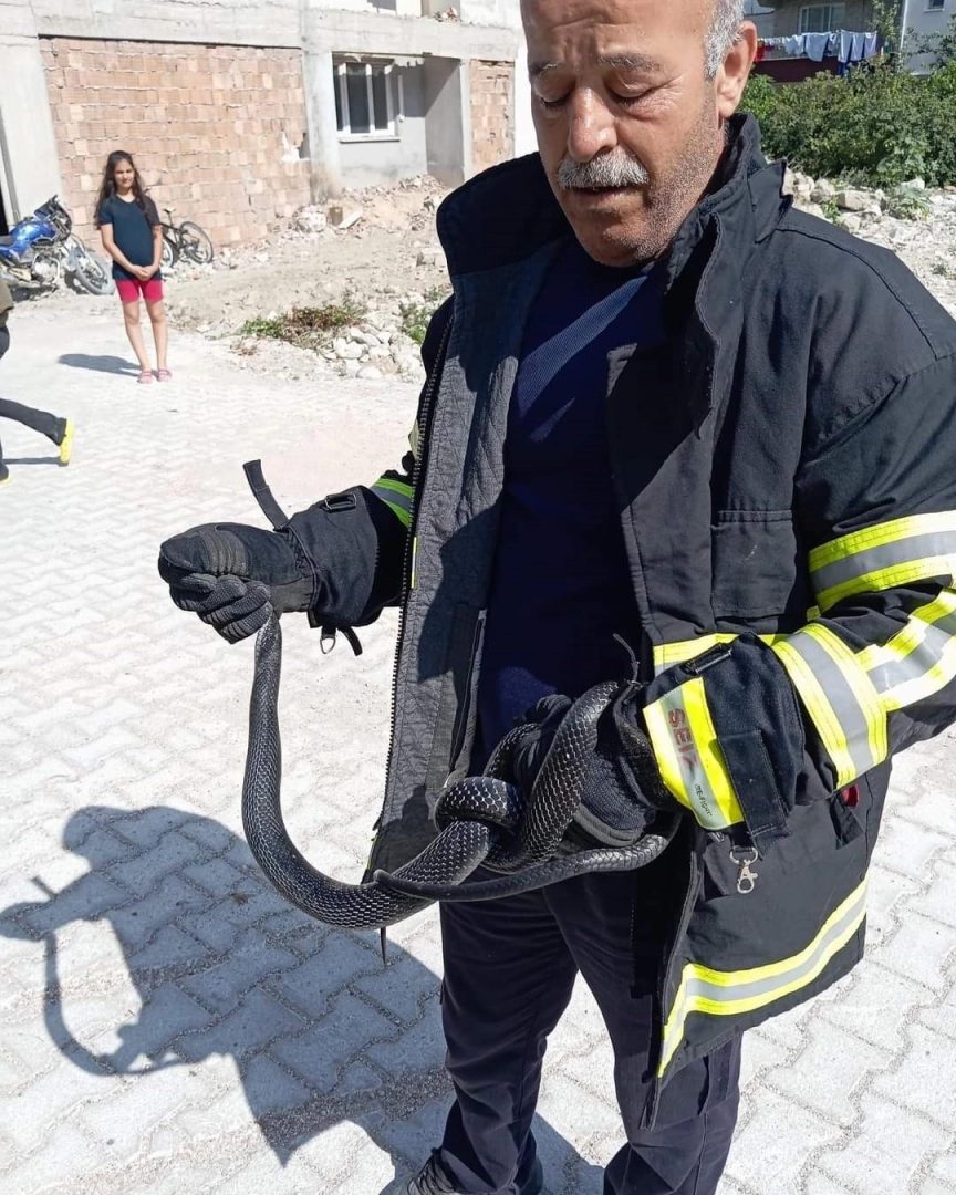 Hatay’ın Samandağ ilçesinde eve giren yılan, itfaiye ekipleri tarafından yakalanarak doğal yaşam alanına bırakıldı.