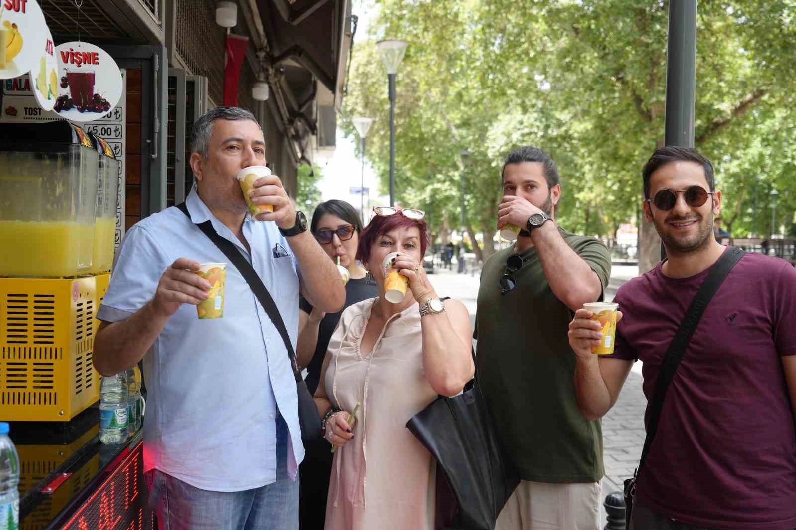 Serinlemenin yanı sıra vitamine olan ihtiyaçlarından dolayı atom içeceğe yöneldiklerini belirten Mehmet Ali ve Semra Çoban, “Almanya’da yaşıyoruz. Her sene Gaziantep’e geliyoruz. Genellikle de sıcak aylarda geldiğimiz için taze sıkım içecekleri tüketiyoruz. Hem sıcaklık hem de vitamine olan ihtiyacımız bizi bu içeceklere yöneltiyor” diye konuştu.