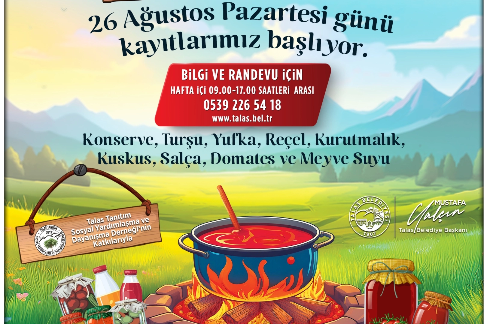 Talas Tanıtım, Sosyal Yardımlaşma ve Dayanışma Derneği’nin katkılarıyla düzenlenen organizasyonda üretilen el yapımı ürünler de alıcısıyla buluşacak.