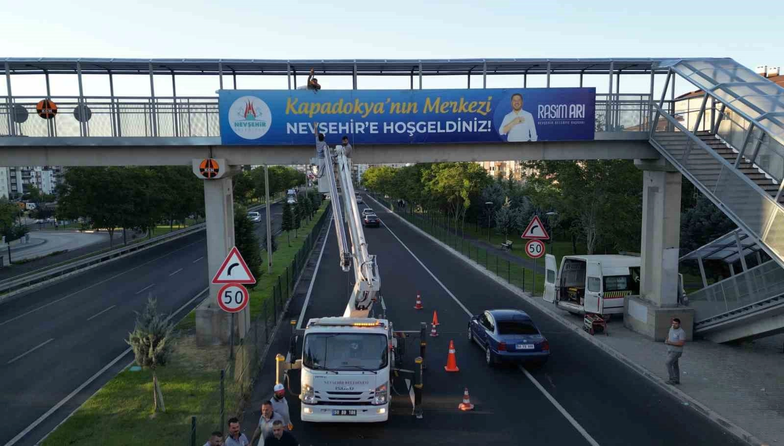 Nevşehir Belediyesi tarafından bir süre önce bir üst geçide asılan ve Karayolları Bölge Müdürlüğü tarafından kaldırılan ‘Kapadokya’nın Merkezi Nevşehir’e Hoş Geldiniz’ yazısı tekrar aynı yerine asıldı.