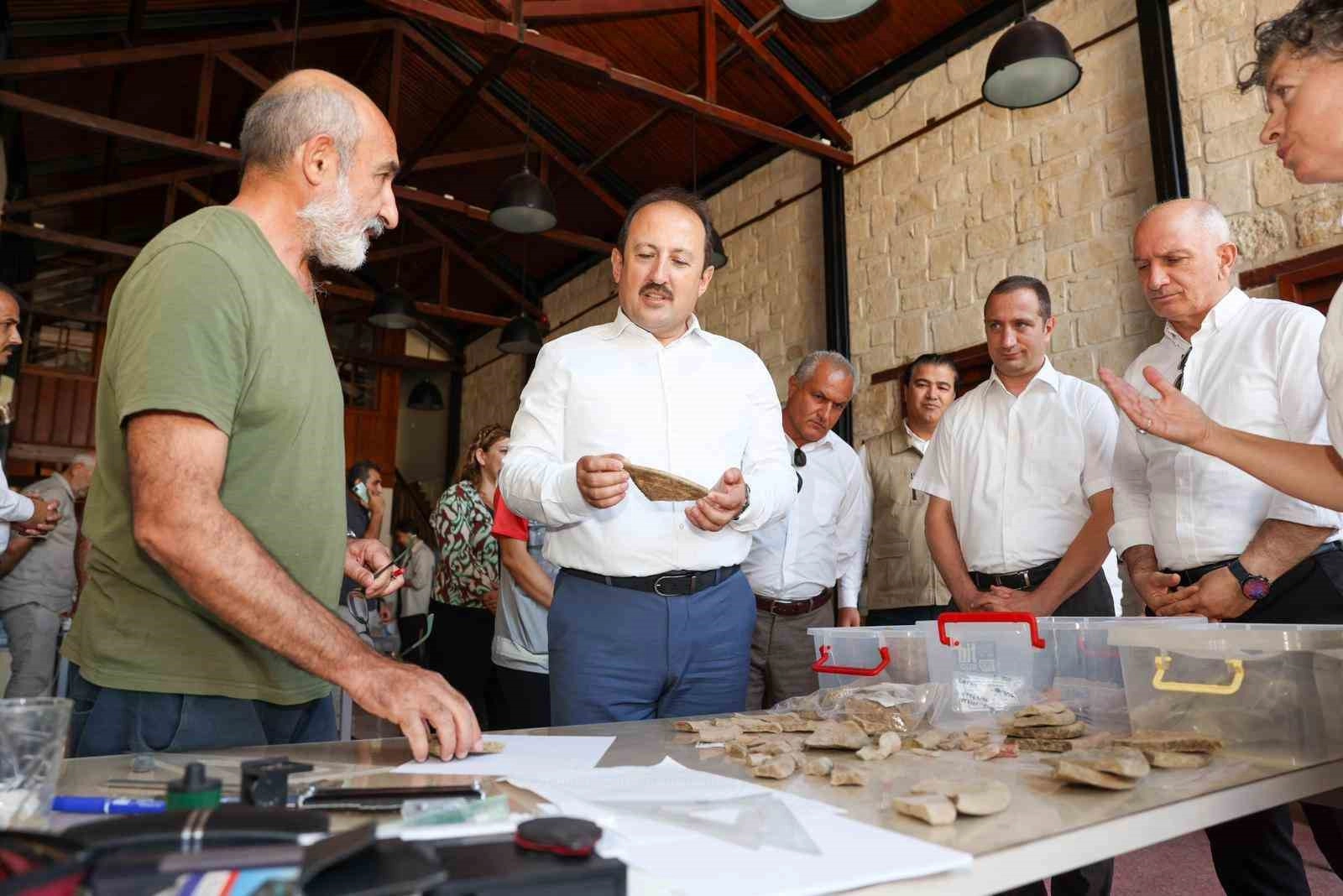 Vali Pehlivan, Tarsus programı kapsamında Gözlükule Kazısı Araştırma Merkezinde arkeolojik eser depoları, kazı evi, laboratuvar, kütüphane, sergi ve konferans salonlarını gezdi, Tarsus Gözlükule Kazı Başkanı ve Boğaziçi Üniversitesi Öğretim Üyesi Prof. Dr. Aslı Özyar’dan yürütülen çalışma ve faaliyetler hakkında bilgiler aldı.