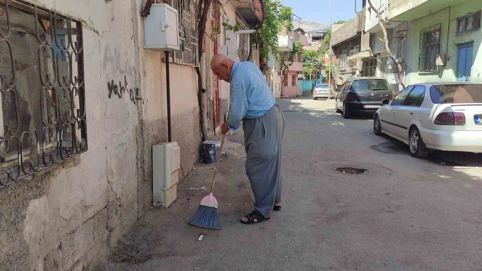 Kahramanmaraş’ta 81 yaşındaki Mehmet Ali Yördem, her gün evinin önünü ve bulunduğu sokağı temizleyerek örnek oluyor.