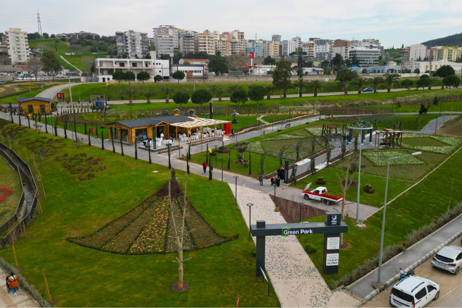 Son 10 yılda sağlıktan spora, kültürden sanata, sosyal yaşamdan turizme kadar birçok alanda hayata geçirdiği projelerle kente değer katan Aliağa Belediyesi, İZBAN Aliağa durağı girişinde 14 bin metrekare alan üzerine kurulu, rengârenk çiçek örgüsü ve yemyeşil donatısıyla dikkat çeken Green Park projesini de tamamlayarak vatandaşlarının hizmetine sundu. Sosyal medya hesapları üzerinden yaptığı paylaşımla Green Park’ı tanıtan Aliağa Belediye Başkanı Serkan Acar, “Green Parkımızda; Türk Bahçemiz, rengarenk çiçeklerimiz, tıbbi ve aromatik bitki bahçemiz, Green Marketimiz, bitki heykellerimiz, çocuk oyun alanlarımız, Aliağasporumuzun ürünlerinin satışta olduğu AğaStore, kuş kulemiz ve ailecek vakit geçirebileceğimiz kafeteryamız bulunuyor. Belediye fidanlığımızda ve toprak üretim tesisimizde ürettiğimiz iç ve dış mekân bitkilerimiz ile üretimini yine belediyemizin yaptığı saksı topraklarının satışı da Green Marketten yapılacak. Aliağalı vatandaşlarımızın ve İZBAN ile İzmir’e giden misafirlerimizin vakit geçirebileceği güzel bir bahçemiz oldu. Aliağa'mıza hayırlı olsun” dedi.