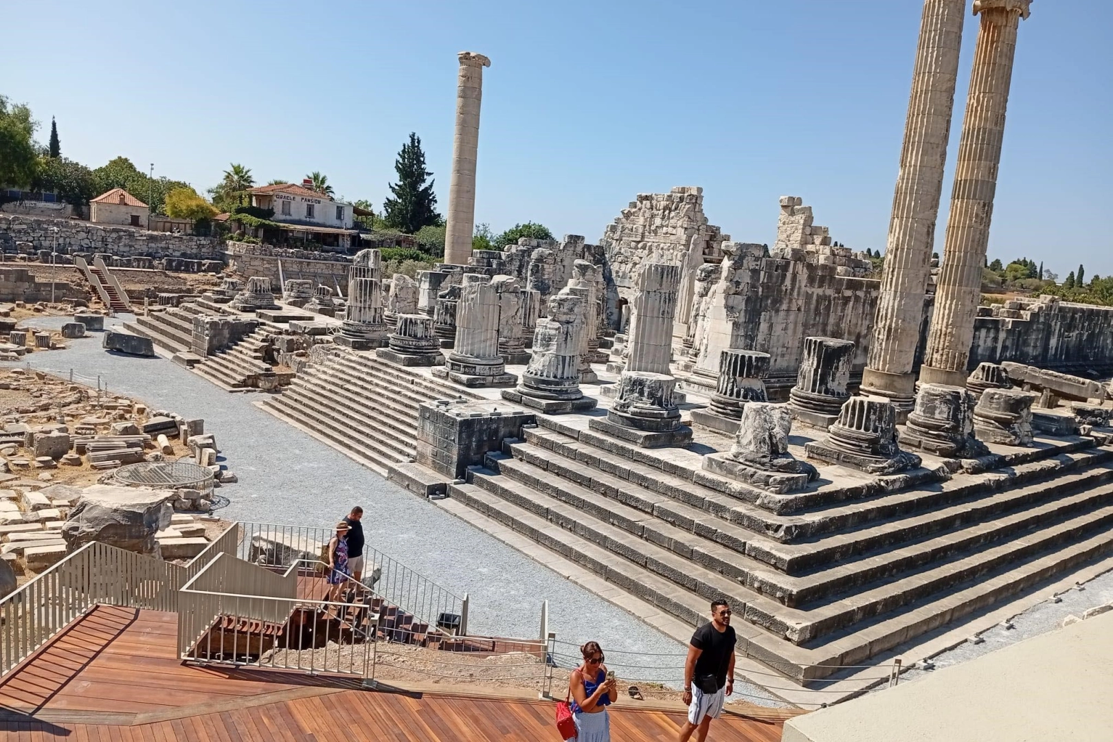 Milattan Önce (M.Ö.) 8. yüzyılda İyonyalılar tarafından inşa edilen tapınağın, Yunan mitolojisindeki Tanrı Kral Zeus'un oğlu Apollon'a adandığı düşünülürken, tarihi tapınak geçtiğimiz 5 Ağustos’da gerçekleştirilen test açılışının ardından ziyaretçilerini kabul etmeye başlamıştı. Yapılan çalışmalar kapsamında aydınlatma işleri de tamamlanırken tapınak, gece müzeciliği için de ziyarete açıldı. Saat 18.50’de gündüz ziyaretlerinin sonlandırıldığı tapınak, 19.00 - 21.00 saatleri arasında da ziyaret edilebilecek.