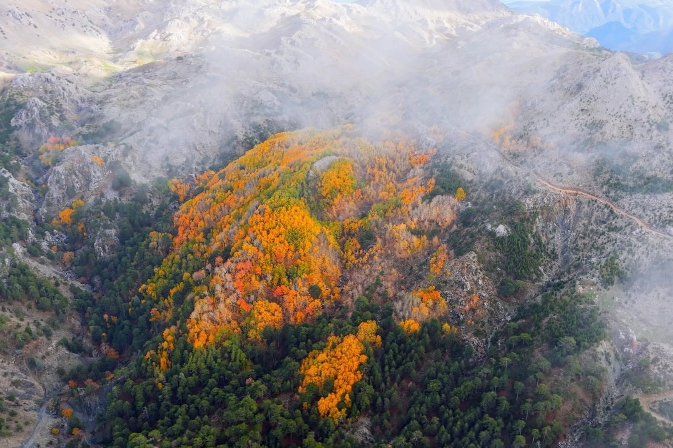 Denizli'nin Çameli ilçesi, zengin florası ve yüksek endemik tür çeşitliliğiyle dikkat çekiyor. İlçenin önemli doğal alanlarından biri olan titrek kavak ormanları ise özellikle ziyaretçilerine görsel bir şölen sunuyor. Sarı, kızıl, turuncu ve yeşilin tonlarıyla oluşan renk cümbüşü havadan görüntülendi. Denizli'nin Çameli ilçesi, zengin florası ve yüksek endemik tür çeşitliliğiyle dikkat çekiyor. Yaklaşık 750 ile 2 bin 300 metre rakımda yer alan ilçe; vadileri, meraları ve yüksek dağlarıyla çok sayıda bitki türüne ev sahipliği yapıyor. Çameli florasında 200'a yakın endemik bitki türünün bulunması, bölgenin coğrafi yapısının sağladığı doğal zenginlikten kaynaklanıyor. İlçenin önemli doğal alanlarından biri olan titrek kavak ormanları ise özellikle sonbahar ve kış aylarında ziyaretçilerine görsel bir şölen sunuyor. Sarıdan kahverengiye uzanan tonların hâkim olduğu bölgede yüksek ağaçların oluşturduğu renk cümbüşü doğaseverler tarafından yoğun ilgi görüyor. Türkiye'de bu denli yoğunlukta görülen titrek kavak topluluklarına nadiren rastlandığını belirten uzmanlar, Çameli'nin bu açıdan önemli bir ekolojik değere sahip olduğuna dikkat çekiyor. Bölge hem biyolojik çeşitlilik hem de doğal güzellik açısından eşsiz bir zenginlik sunuyor. "Bu orman Çameli orman sınırları içerisindedir ve titizlikle korunmaktadır" Titrek kavak ağaçlarının titizlikle korunduğunu ifade eden Endemik Bitkiler Araştırmacısı Rıfat Özdemir, "Bu gördüğünüz titrek kavak ormanları sonbahar ve kış aylarında renk cümbüşü oluşturuyor. Bütün renkleri hemen hemen görürsünüz. Türkiye'deki dağılımı oldukça seyrektir. Bu saha, Çameli orman sınırları içerisindedir ve titizlikle korunmaktadır. Çameli ilçemiz flora açısından çok zengindir" dedi. "Yapılan çalışmalar sonucunda 200'ün üzerinde endemik tür bitki tespit edildi" Çameli'de 200'ün üzerinde endemik tür bitki tespit edildiğini ve çalışmaların devam edeceğini belirten Çameli Belediye Başkanı Cengiz Arslan ise, "Çameli ilçemiz endemik türler bakımından en zengin bölgelerden bir tanesi. Özellikle Gargın Yaylası bölge dediğimiz rakamı 2 binin üzerinde olan bir bölgemiz var. Bu bölgemizde şu anda Hasan Hocamızla beraber yapmış olduğumuz çalışmalarla 200'ün üzerinde endemik tür bitki tespitini yaptık. İnşallah yakın bir zamanda da bunların kitap basımını açıklamasını yapmış olacağız. Şu anda özellikle Fethiye-Çameli arasında Akta bölgesi dediğimiz bölgede bir Akkavak orman bölgemiz var. Gerçekten doğanın bir harikası, güzel bir şekilde orada yetişmiş çoğalmış bu ormanımız özellikle sonbahar ve kış aylarında trekking yapmak isteyen yürüyüş yapmak isteyen gruplar için çok güzel bir görsel şölen sunuyor" ifadelerini kullandı. "Vatandaşlarımızı bu güzel doğa harikasını görmeye Çameli'ye davet ediyoruz" Vatandaşları bu güzel doğa harikasını görmeye Çameli'ye davet eden Başkan Cengiz Arslan, "Orman İşletme ile beraber bu bölgenin korunması ile ilgili yerel yönetimler belirli olarak elimizden gelen çabayı sarf ediyoruz. İnşallah buranın doğa turizmine kazandırılması ile ilgili de güzel düşüncemiz projemiz var. Bu bölge bizim yürüyüş rotalarımız alanında en güzel rotalarımız bir tanesi. Bütün bizi izleyen vatandaşlarımızı bu güzel doğa harikasını görmeye Çameli'ye davet ediyoruz" dedi.
