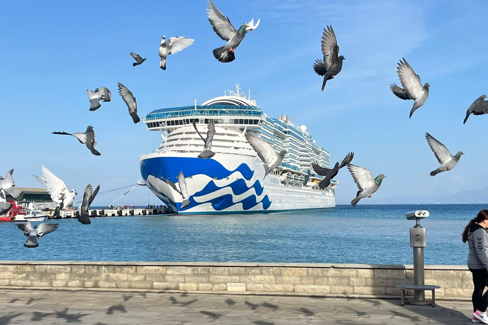 Kuşadası’na dünyanın en büyük yolcu gemilerinden biri olan Panama bayraklı Sun Princess ile çoğunluğu Amerika Birleşik Devletleri (ABD) vatandaşı olan 3 bin 745 turist ve bin 675 mürettebat geldi. Kente ilk seferini yapması dolayısıyla gemi kaptanı ve şirket yöneticileri ile bir araya gelerek çeşitli hediyeler takdim eden Başkan Ömer Günel; "Kruvaziyer turizmi için attığımız adımların meyvelerini veriyor olması bizi çok mutlu etti" dedi. Dünyanın en büyük ve yeni kruvaziyerlerinden 345 metre uzunluğunda ve 175 bin 500 groston ağırlığındaki İtalya bayraklı Sun Princess, sabah saatlerinde Kuşadası Limanı’na yanaştı. Bu yıl suya indirilen ve Kuşadası’na ilk seferini yapan kruvaziyer ile kente çoğunluğu ABD vatandaşı olan 3 bin 745 turist ve bin 675 mürettebat geldi. Geminin kente ilk seferini gerçekleştirmesi nedeniyle Kuşadası Limanı içerisinde tören düzenlenerek turistler, Kuşadası Belediye Bandosu ve halk oyunları ekiplerinin gösterileri eşliğinde karşılandı. Sun Princess 2024 yılında Kuşadası'na 3 sefer daha yapacak. Kuşadası Belediye Başkanı Ömer Günel de Kuşadası Kaymakamı İbrahim Keklik ve beraberlerindeki heyetle gemiye çıktı. Başkan Ömer Günel, gemi şirketinin CEO'su John Padgett ve kaptan Craig Street ile bir araya gelip, çeşitli hediyeler ve teşekkür plaketi takdim etti. Kruvaziyer gemisini dolaşarak, yöneticilerden bilgi alan Başkan Ömer Günel, daha sonra Kaymakam İbrahim Keklik'le birlikte dümene de geçti.
