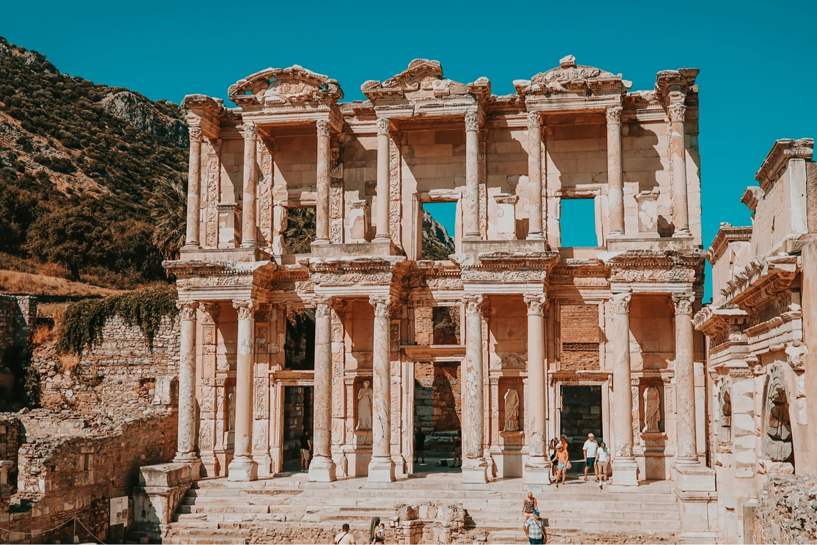 Efes'in en dikkat çeken yapıları arasında Celsus Kütüphanesi, Büyük Tiyatro, Yamaç Evleri, Agora ve Artemis Tapınağı bulunmakta. Bu yapılar, antik dönemin mühendislik ve mimari yeteneklerinin birer şaheseri olarak günümüze ulaşmış.
