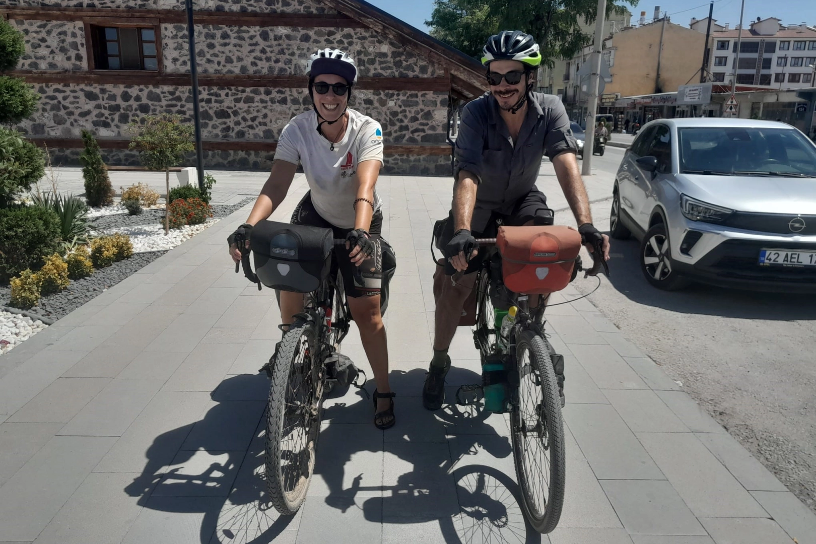 Kanadalı iki arkadaş, Avukat Philipe ve üniversite danışmanı Marjorie, Türkiye'yi bisikletle gezmeye çıktı. 5 Ağustos'ta başladıkları ve 1 Eylül'de sona erecek 1 aylık Türkiye turu kapsamında Konya’nın Karapınar ilçesine gelen ikili, gördükleri misafirperverlik karşısında adeta büyülendiklerini dile getirdi. Türkiye’yi uzun zamandır merak ettiklerini ve birkaç yıl önce bu geziyi planlamaya başladıklarını belirten Philipe ve Marjorie, bu seyahatin sadece turistik bölgelerle sınırlı olmadığını, asıl amaçlarının Türkiye’nin otantik kültürünü ve yerel insanlarını tanımak olduğunu vurguladı. İnsanlarla sohbet ettiklerini ve kendilerini evlerine davet edip yemekler ikram edildiğini belirten Marjorie, "Sanırım bu kadar sıcak karşılama dünyada başka hiçbir ülkede mümkün değil" dedi. Philipe ise Türkiye'deki doğa çeşitliliğine hayran kaldıklarını dağlar, kaya oluşumları, Karapınar’daki çöl benzeri yollar, uçsuz bucaksız tarım arazilerinin etkileyici olduğunu bu güzellikleri tüm arkadaşlarına anlatacaklarını söyledi. Bisiklet yolculukları sırasında bazı teknik sorunlarla karşılaştıklarını söyleyen ikili, Türk halkının yardımseverliği ve nezaketi sayesinde hiçbir sorun yaşamadıklarını belirtti. Philipe, "Sürücüler motosikletlilere karşı çok saygılı. Türk halkı şimdiye kadar gezdiğimiz ülkeler arasında en misafirperver olanı" şeklinde konuştu. Kanadalı dostlar, Türkiye turunu tamamladıktan sonra ülkelerine döneceklerini ancak bu eşsiz deneyimi ömür boyu unutmayacaklarını söyledi.