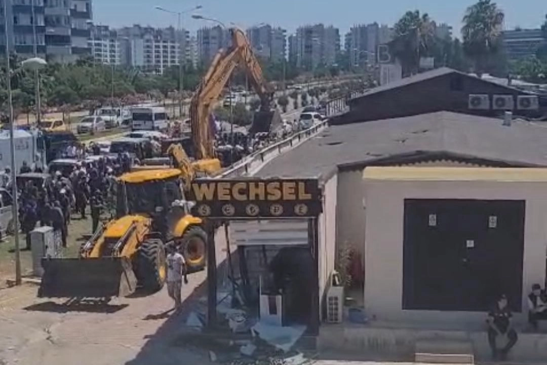 Antalya’nın Aksu ilçesine bağlı turizm bölgesi Kundu’da kaçak olduğu belirtilen dükkan ver çarşıların yıkımı esnasında gerginlik ve arbede oluştu. Bazı esnaf ve çalışanlar, belediye ekiplerine tepki göstererek yıkımı durdurmak için iş yerlerinin çatılarına çıkıp iş makinelerine engel olmaya çalıştı. Antalya’nın Aksu ilçesine bağlı turizm bölgesi Kundu’da, yeşil alan üzerine inşa edilen ve kaçak olduğu belirtilen dükkan ve çarşıların yıkımına başlandı. Bugün sabah saatlerinde, güvenlik önlemleri eşliğinde, ilk etapta belirlenen çarşı ve dükkanların yıkımına başlandı. Aksu Belediyesi önünde emniyet güçleri, bölgede herhangi bir olumsuzluğa karşı nöbet tuttu. Daha önce iki çarşının yıkıldığı bölgede, bugün de iki çarşı daha yıkıldı. Yıkım esnasında ekipler ile dükkan sahipleri arasında gerginlik yaşandı. Bazı esnaf ve çalışanlar, belediye ekiplerine tepki göstererek yıkımı durdurmak için işyerlerinin çatılarına çıkıp iş makinelerine müdahalede bulunmak istedi. Çevik kuvvet ve TOMA müdahalesi sonrası belirlenen yapıların yıkımı gerçekleştirildi.