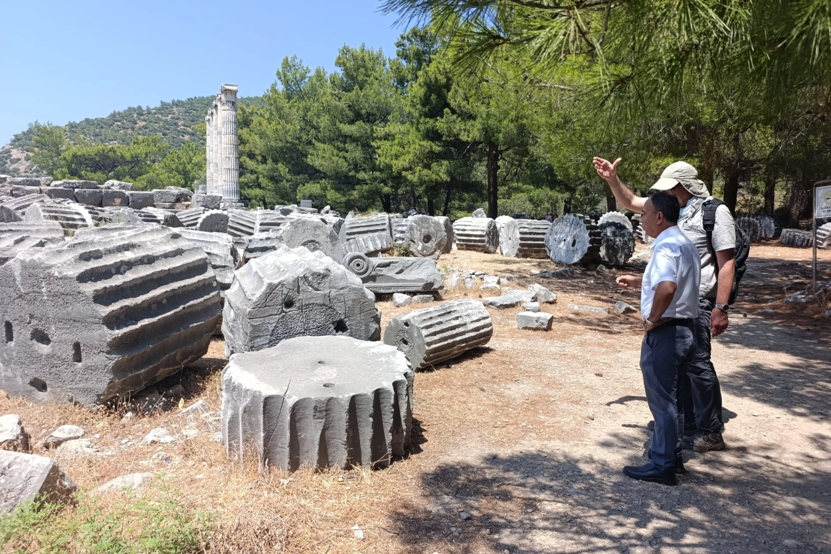 Milattan Önce 4. yüzyılda kurulduğu ve ilk planlı şehir olarak bilinen, ayrıca Anadolu'nun Pompeisi olarak nitelendirilen Priene Antik Kenti, 2 metre kalınlığındaki taş duvarları ve savunma stratejileriyle dikkat çekerken, kentin UNESCO Dünya Mirası Listesi'ne alınması için bölgede çalışmalar devam ediyor. Geçmişinde birçok medeniyete ev sahipliği yapan Aydın'ın Söke ilçesinde bulunan ve ilk planlı şehir olma özelliği taşıyan Priene Antik Kenti, savunma stratejisiyle de dikkat çekiyor. 2018 yılında UNESCO Dünya Miras Geçici Listesi'ne dahil olmasının ardından tanınırlığını arttıran Priene Antik Kenti'ne ilgi her geçen gün artarken, antik kentin kalıcı olarak UNESCO Dünya Mirası Listesi'ne alınması için bölgede çalışmalar aralıksız sürüyor. Bu kapsamda bölgeye giden Aydın İl Kültür ve Turizm Müdürü Ahmet Demir, kazı ekibinden çalışmalar hakkında bilgi alarak incelemelerde bulundu. Antik kentin Dünya Mirası Listesi'ne girmesi için çalışmaların aralıksız sürdüğünü ifade eden Demir; "Priene Ören Yeri'nin UNESCO Dünya Mirası Listesi'ne alınmasına yönelik çalışmalara ilişkin değerlendirme ve istişarelerde bulunduk" dedi. Yaklaşık 40 hektarlık bir alanda bulunan antik kent, araziye uyumlu yapılaşması ve 2 metre kalınlığındaki taş duvarları ile savunma açısında da stratejik bir öneme sahip olurken, aynı zamanda kayaları oyup oluşturulan doğal merdivenler de günümüzde yürüyüş meraklıların "Z-Yolu" olarak kullanılıyor. Pompei Antik Kenti ile benzerlik taşıyor Söke ilçe merkezine 15 kilometre mesafede Güllübahçe Mahallesi'nde bulunan Priene Antik Kenti'nin, M.Ö. 4'üncü yüzyılda kurulduğu, kendine özgü kent planı ile ilk planlı şehir sisteminin öncüsü olarak kabul edildiği biliniyor. Athena Tapınağı, Tiyatrosu, Demeter Tapınağı, Zeus Tapınağı, Gymnasion, Mısır Tapınağı, Kilisesi ve konut alanlarıyla dikkati çeken antik kent, ayrıca İtalya'da bulunan Pompei Antik Kenti'ne olan benzerliğiyle de dikkat çekiyor. Modern şehrin ilk örneklerini barındırıyor Doğa ve tarihin iç içe olduğu Priene Antik Kenti, günümüz modern şehir planının da öncülüğünü yapıyor. Şehrin üzerine kurulduğu dik yamaç güneye bakarken, şehrin akropolisi 230 metre yukarıda bulunuyor. Şehir güvenlik kuleleri olan 2 metre kalınlığında taş duvar ile çevrilirken, şehre giriş, üç ana kapıdan yapılıyor. Şehrin 7 metre genişliğinde doğu-batı doğrultusunda altı ana yolu ve bunları dik kesen genişliği 3,5 metre olan 15 tali yolu bulunuyor. Şehirdeki tüm kavşaklar arasındaki mesafenin aynı olması, modern şehrin ilk örneklerine emsal teşkil ediyor. Ayrıca yapılan çalışmalarda şehirde temiz su ve kanalizasyon yapıları açıkça görülebiliyor.