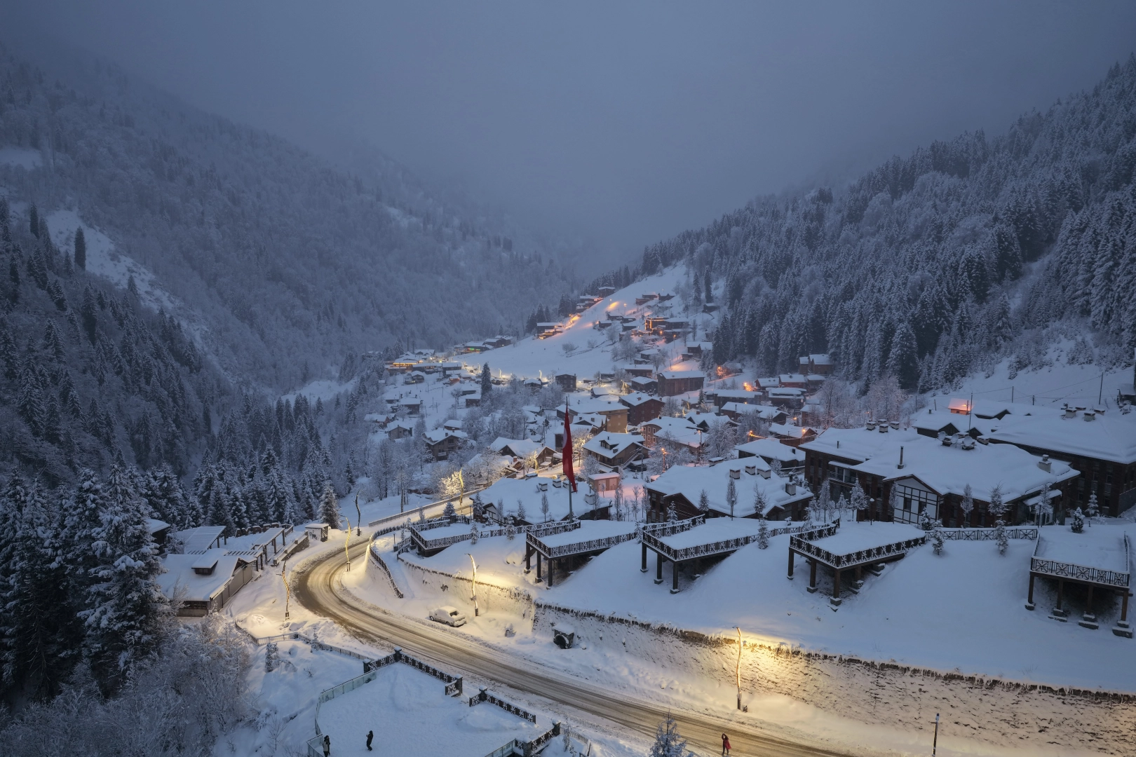 Yaz aylarında yeşilin her tonunu barındıran, kış mevsiminde ise ayrı bir güzelliğe kavuşan Ayder Yaylası, bembeyaz kar örtüsüyle adeta görsel bir şölen sunuyor. Doğal güzelliğiyle her mevsim ziyaretçilerini kendine hayran bırakan Ayder Yaylası, kar yağışı sonrası oluşan manzarasıyla havadan görüntülendi.