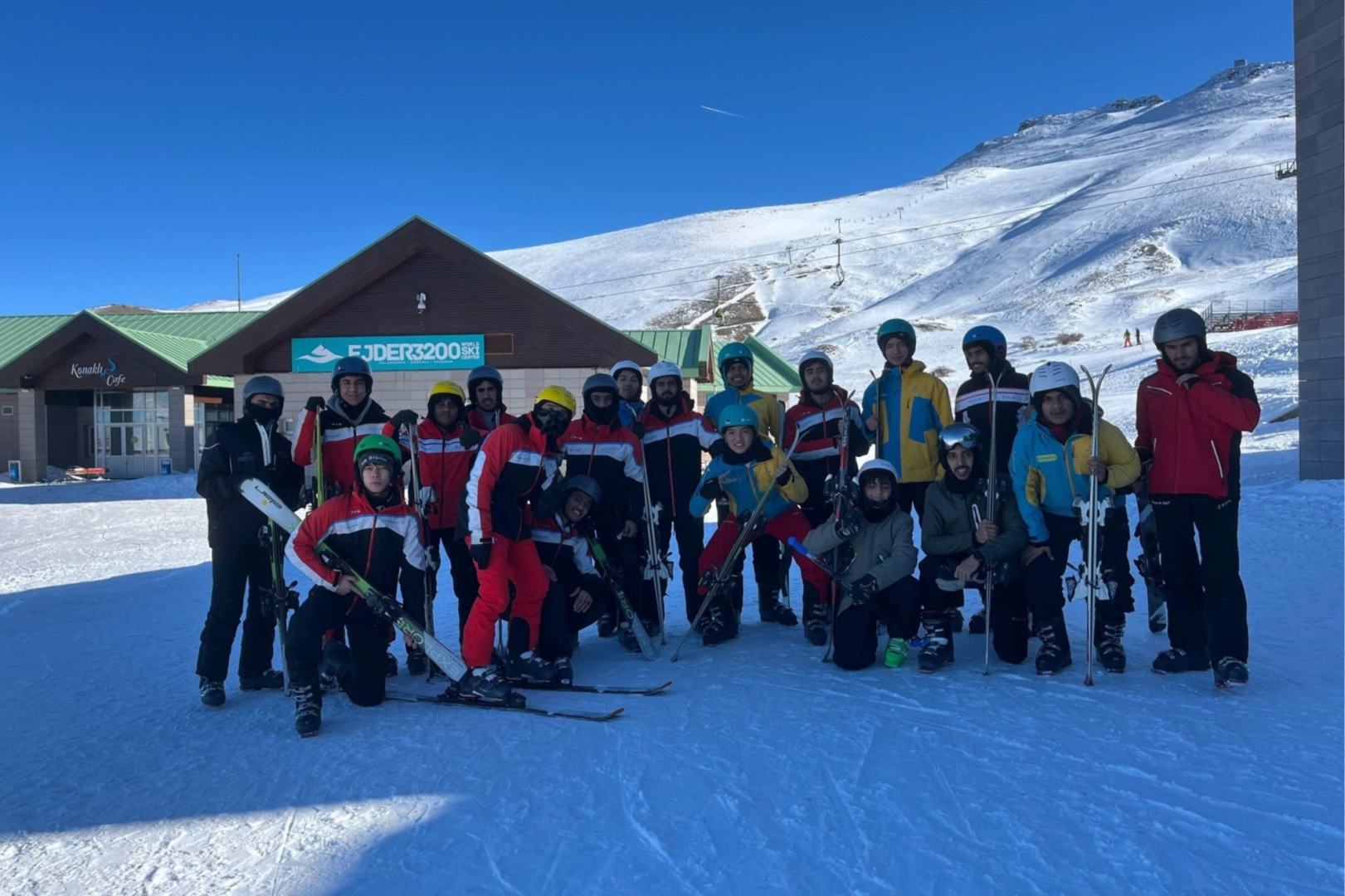 Yemen’den Moritanya’ya birçok ülkeden gelen öğrenciler, dernek merkezindeki çeşitli etkinliklerin yanı sıra bu hafta kayak eğitimine katıldı. Sabah saatlerinde merkeze gelen öğrenciler, ekipmanlarını aldıktan sonra acemi pistinde temel kayak eğitimi aldı. İlk denemelerinde sık sık düşen öğrenciler, kısa sürede kaymayı öğrenerek pistte özgürce kaymaya başladı.