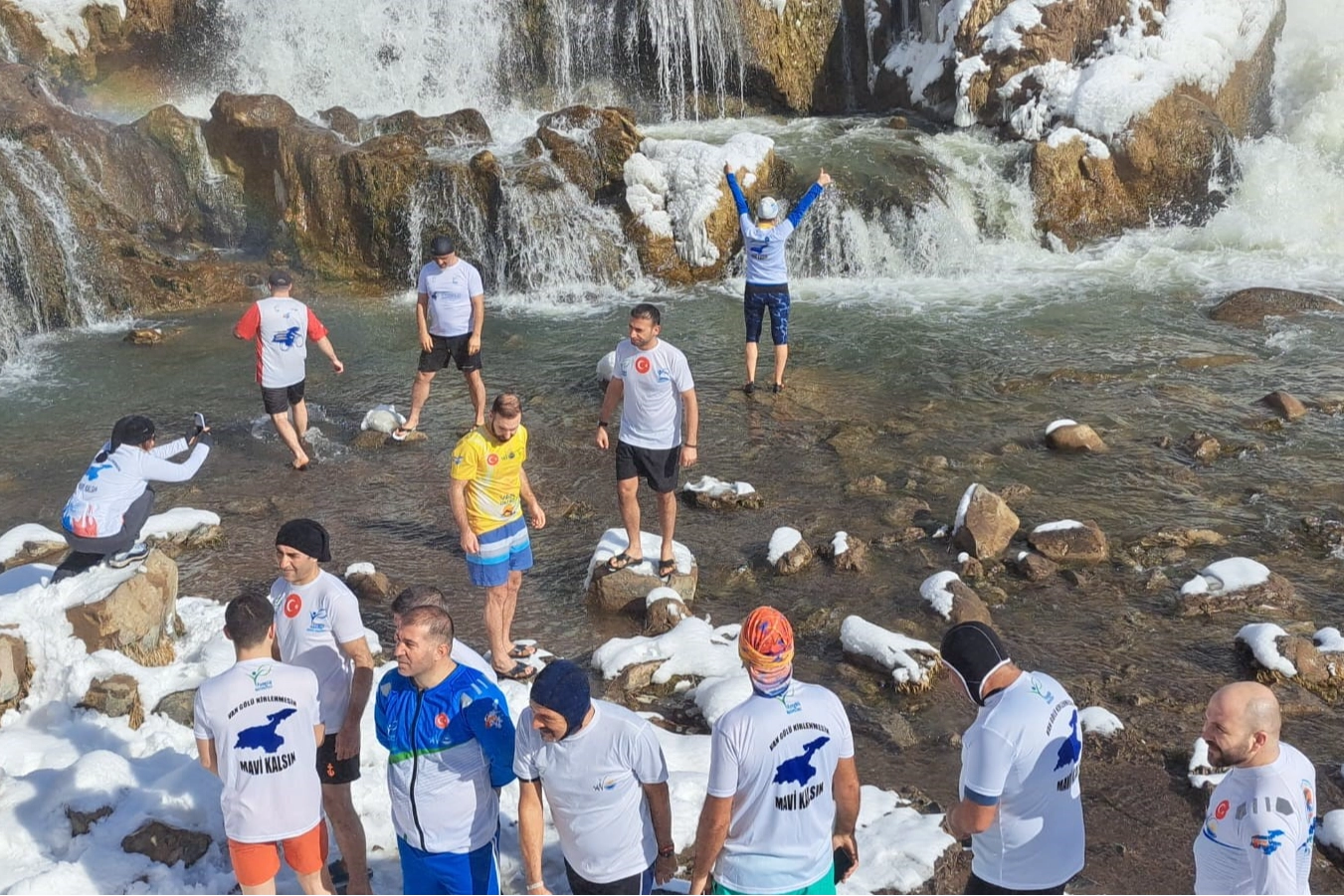 Vangölü Aktivistleri Derneği üyeleri bu yıl beşincisini düzenledikleri "5. Muradiye Şelalesi Kış Yüzme Şenliği" eksi 6 derece soğukta gerçekleştirdi.