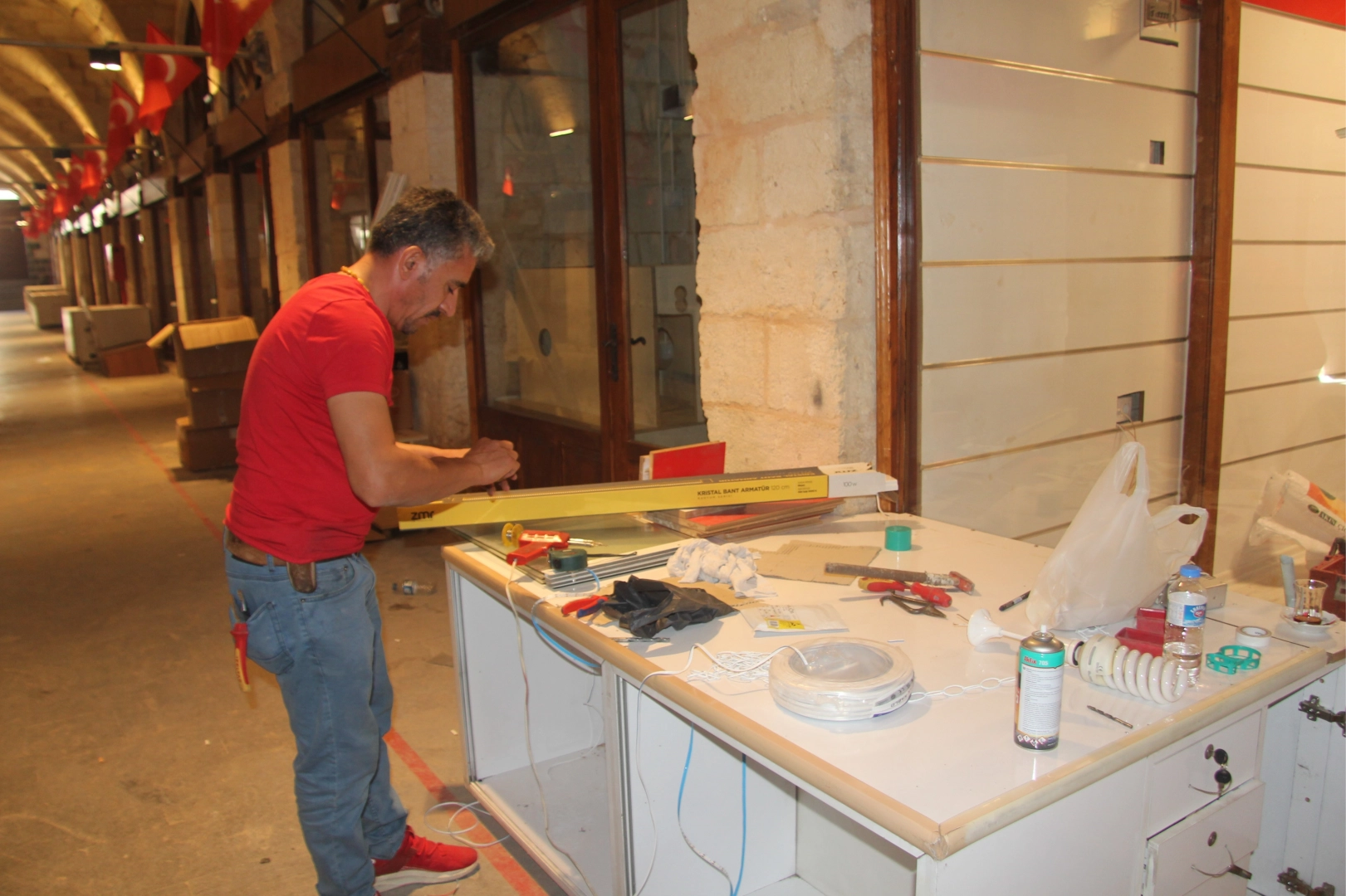 Kahramanmaraş merkezli depremlerde hasar gören ve restorasyon çalışmaları tamamlanan 300 yıllık tarihi Zincirli Bedesten esnafı, yaklaşık 3 yıl aradan sonra iş yerlerine taşınmaya başladı. Darendeli Hüseyin Paşa tarafından 1718 yılında L biçiminde yaptırılan ve binlerce yıllık geçmişe sahip olan Zincirli Bedesten Çarşısı, 6 Şubat 2023'te yaşanan ve 11 ili etkileyen depremlerde ciddi oranda zarar görmüştü. Kültür Turizm Bakanlığı'nca depremin ardından ziyarete kapatılan Zincirli Bedesten Çarşısı'nın yeniden faaliyete açılması için Gaziantep Vakıflar Bölge Müdürlüğünce restorasyon ihalesi yapıldı ve kısa sürede çalışmalara başlandı. Gaziantep'in en kıymetli miraslarından biri olan Zincirli Bedesten'de restorasyon çalışmaları büyük bir incelik ve emekle yürütüldü. Depremlerde ağır hasar gören Zincirli Bedesten yaklaşık 3 yıl süren çalışmaların ardından yeniden şehre ve turizme kazandırıldı. Restorasyon çalışmaları boyunca geçici olarak tarihi Kalealtı'nda kurulan geçici prefabrik çarşıda faaliyet gösteren çarşı esnafı, çalışmaların bitmesiyle eski yerlerine geri dönmeye başladı. Tarihi Bakırcılar Çarşısı başta olmak üzere çevresindeki çarşılara bağlanan kapıları bulunan bedestenin hazır olması esnaf kadar kenti ziyarete gelen turistlerin de yüzünü güldürdü. Yöresel kıyafetler ve aksesuarlar ile Antep fıstığı, kurutmalık ve şire ürünlerinin satıldığı çarşı olarak da kullanılan ve Anadolu'da otantik değerini yitirmeyen ender çarşılardan biri olarak kabul edilen Zincirli Bedesten'de iş yerlerine yerleşmeye başlayan esnaf, yaklaşık 3 yıldır dört gözle bugünü beklediklerini ve bir haftaya kadar çarşının tamamen ziyarete açılacağını bildirdi. Yeniden Zincirli Bedesten'de kepenk açmanın mutluluğunu yaşayan esnaf, çarşıdaki turistik canlılığın ve hareketliliğin başlayacağı günü sabırsızlıkla bekliyor. Çarşı esnafından Fatih Gökgöz, "6 Şubat depremlerinden sonra çarşımız da bayağı büyük hasar oldu ve çarşımız yaklaşık 3 yıl ziyarete kapatıldı. Çarşımız Kültür Turizm Bakanlığı öncülüğünde Gaziantep Vakıflar Bölge Müdürlüğünce restore edildi. Restore ve güçlendirme çalışmaları tamamlandı ve şu an iş yerlerimiz bize teslim edildi. İş yerlerimize yerleşmeye başladık. Deprem sürecinden sonra zorlu bir süreç yaşadık. Rabbim bir daha bu tür felaketler yaşatmasın. Çarşımız haftaya kadar ziyarete açılacak. Herkesi Gaziantep'e ve çarşımıza bekliyoruz" dedi. Zincirli Bedesten'in 18'inci yüzyıldan bu yana kentin en önemli çarşılarından biri olduğunu ifade eden Uğur Kolukısa ise "Depremden sonra çarşımız yaklaşık 3 yıl restorasyon çalışmaları nedeniyle kapalı kaldı. Çarşımızın çok şükür resrtorasyon çalışmaları tamamlandı. Dükkanlarımızı da güzel bir şekilde dekore edeceğiz ve bir hafta içerisinde de açılışımızı yapacağız. Çarşımızda yine yöresel kıyafetler ve aksesuarlar ile Antep fıstığı, kurutmalık ve şire ürünleri satılacak. Herkesi Gaziantep'e bekliyoruz" diye konuştu. Bedestenin Gaziantep için çok önemli bir yapı olduğunu belirten Yunus Gökbulut da, "Yaklaşık 3 yıl süren restorasyon çalışmalarının ardından çarşımız tekrar bizlere teslim edildi. Dükkanlarımızın dizaynını yapıyoruz. İnşallah Zincirli Bedesten Çarşısı turistik açıdan tekrar eski günlerine kavuşacak" şeklinde konuştu. Eşiyle birlikte Kocaeli'den Gaziantep'e gezmeye gelen Anıl Çakır da Zincirli Bedesten'in tekrar ziyarete açılmasına denk gelmenin sevinicini yaşadıklarını söyledi. Kahramanmaraş merkezli depremlerde hasar gören ve restorasyon çalışmaları tamamlanan 300 yıllık tarihi Zincirli Bedesten esnafı, yaklaşık 3 yıl aradan sonra iş yerlerine taşınmaya başladı. Darendeli Hüseyin Paşa tarafından 1718 yılında L biçiminde yaptırılan ve binlerce yıllık geçmişe sahip olan Zincirli Bedesten Çarşısı, 6 Şubat 2023'te yaşanan ve 11 ili etkileyen depremlerde ciddi oranda zarar görmüştü. Kültür Turizm Bakanlığı'nca depremin ardından ziyarete kapatılan Zincirli Bedesten Çarşısı'nın yeniden faaliyete açılması için Gaziantep Vakıflar Bölge Müdürlüğünce restorasyon ihalesi yapıldı ve kısa sürede çalışmalara başlandı. Gaziantep'in en kıymetli miraslarından biri olan Zincirli Bedesten'de restorasyon çalışmaları büyük bir incelik ve emekle yürütüldü. Depremlerde ağır hasar gören Zincirli Bedesten yaklaşık 3 yıl süren çalışmaların ardından yeniden şehre ve turizme kazandırıldı. Restorasyon çalışmaları boyunca geçici olarak tarihi Kalealtı'nda kurulan geçici prefabrik çarşıda faaliyet gösteren çarşı esnafı, çalışmaların bitmesiyle eski yerlerine geri dönmeye başladı. Tarihi Bakırcılar Çarşısı başta olmak üzere çevresindeki çarşılara bağlanan kapıları bulunan bedestenin hazır olması esnaf kadar kenti ziyarete gelen turistlerin de yüzünü güldürdü. Yöresel kıyafetler ve aksesuarlar ile Antep fıstığı, kurutmalık ve şire ürünlerinin satıldığı çarşı olarak da kullanılan ve Anadolu'da otantik değerini yitirmeyen ender çarşılardan biri olarak kabul edilen Zincirli Bedesten'de iş yerlerine yerleşmeye başlayan esnaf, yaklaşık 3 yıldır dört gözle bugünü beklediklerini ve bir haftaya kadar çarşının tamamen ziyarete açılacağını bildirdi. Yeniden Zincirli Bedesten'de kepenk açmanın mutluluğunu yaşayan esnaf, çarşıdaki turistik canlılığın ve hareketliliğin başlayacağı günü sabırsızlıkla bekliyor. Çarşı esnafından Fatih Gökgöz, "6 Şubat depremlerinden sonra çarşımız da bayağı büyük hasar oldu ve çarşımız yaklaşık 3 yıl ziyarete kapatıldı. Çarşımız K